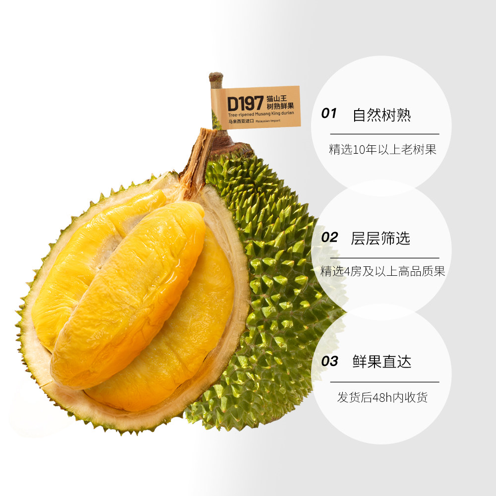 【自营】市舶士马来D197猫山王榴莲鲜果新鲜树熟榴莲保五房送礼