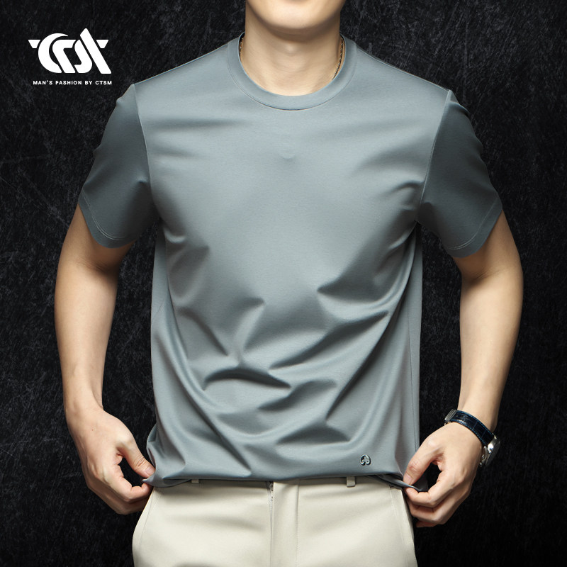 男士圆领丝光棉高端短袖T恤纯色纯棉冰丝半袖夏装打底衫2025夏装