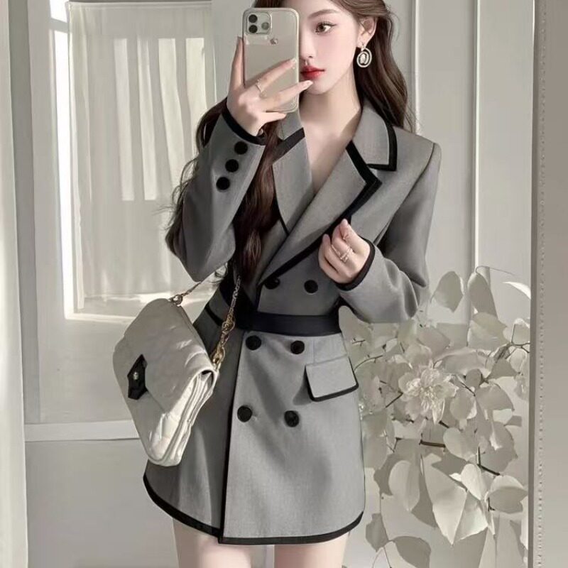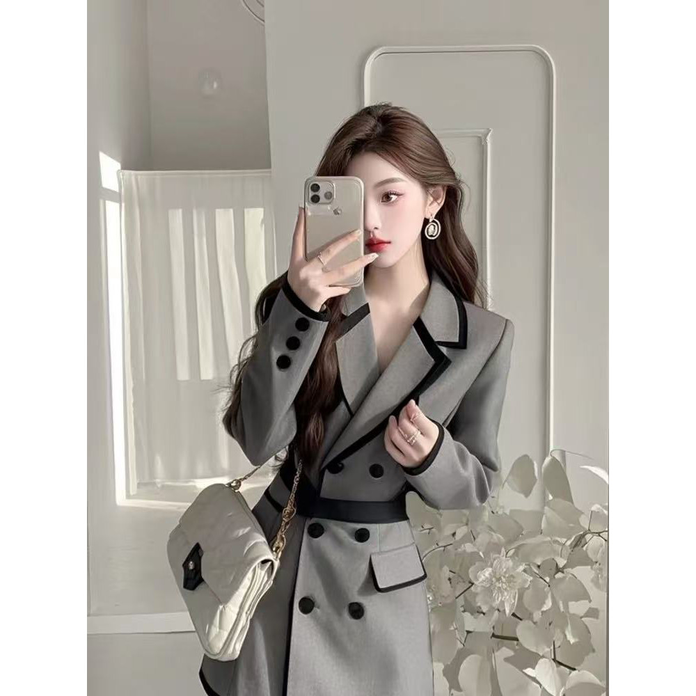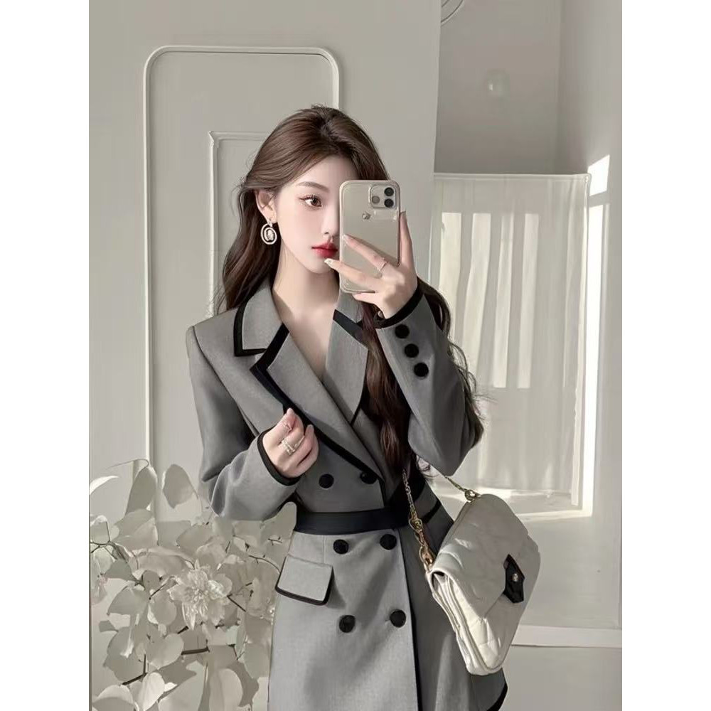 气质名媛高端女神范高级感小香风收腰内搭灰色西装连衣裙外套上衣