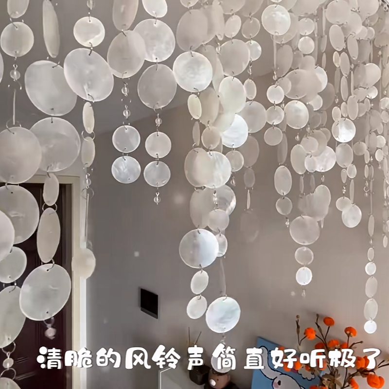 天然贝壳圆片diy镜贝装饰贝母片书法挂饰风铃贝壳吊饰幼儿园装饰