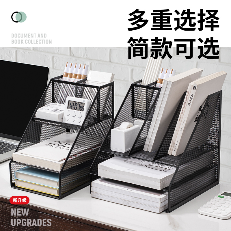 办公桌收纳置物架文件收纳盒办公用品文件架桌面书架多层大容量文件框文件夹A4纸资料档案整理架金属书立架铁