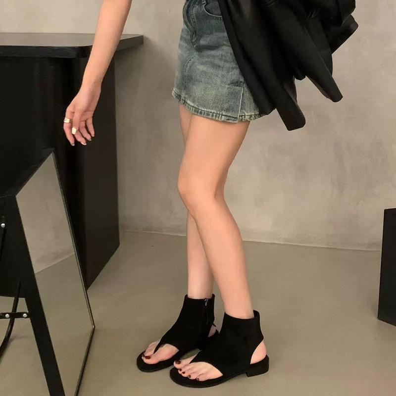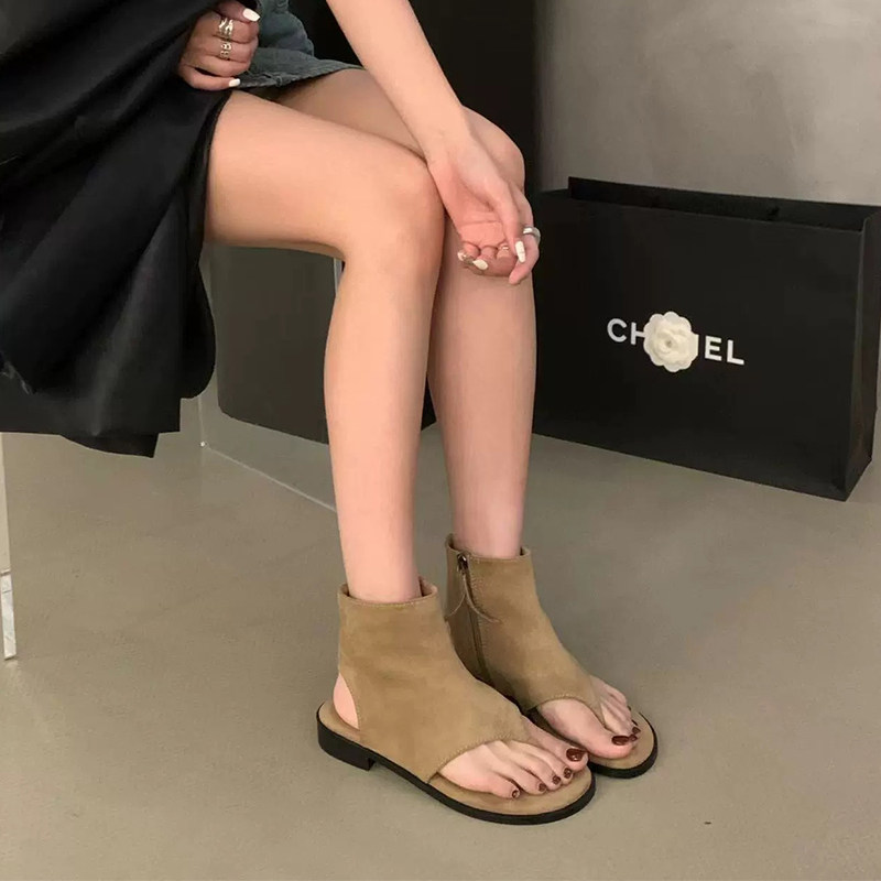 复古粗跟软底夹趾凉靴女夏季2025新款罗马凉鞋女西部牛仔靴女靴子