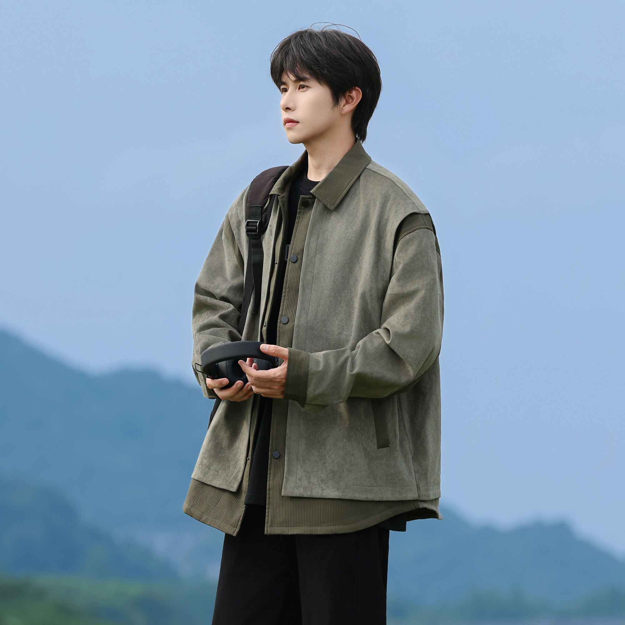拼接新中式假两件外套男秋季新款设计感男生休闲宽松大码夹克男款