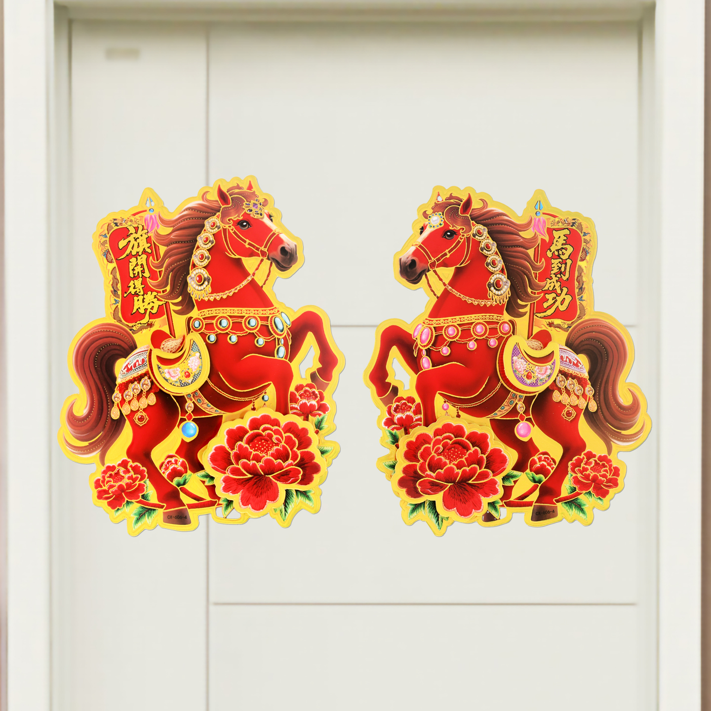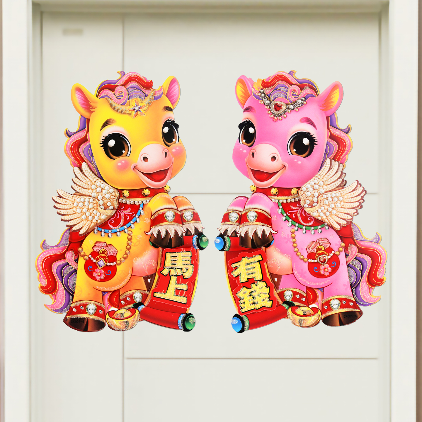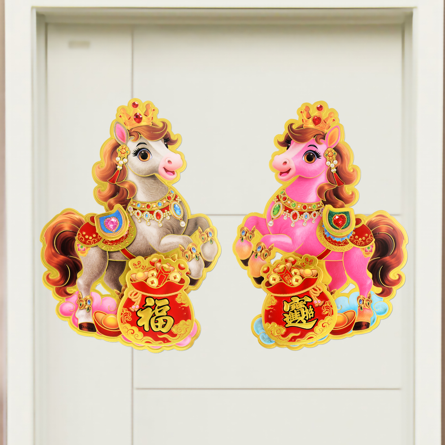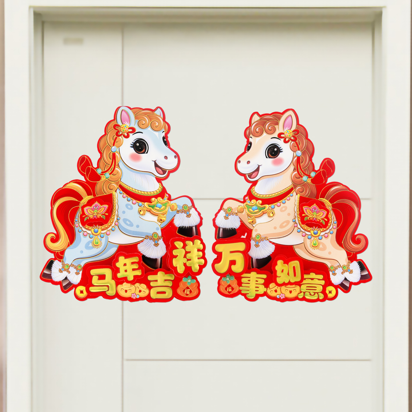马年门贴2026新款卡通对贴立体生肖福字贴春节年画贴纸新年帖装饰