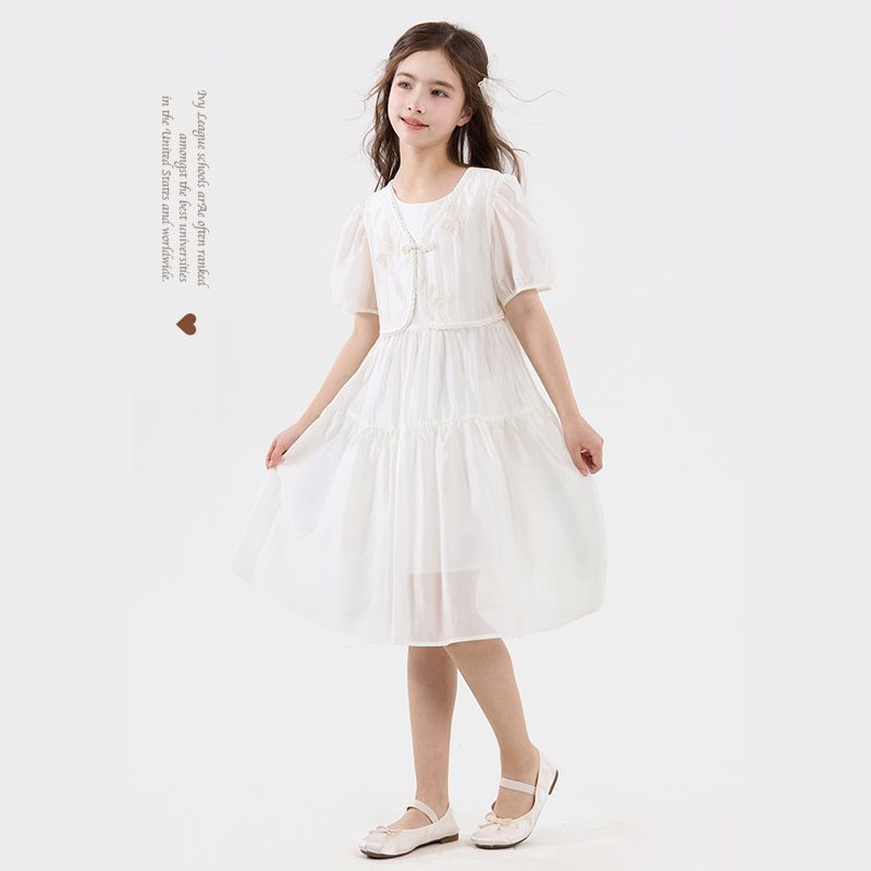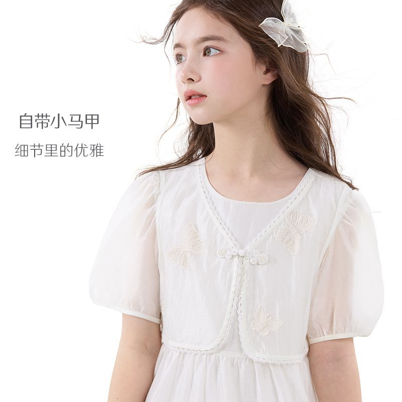女童连衣裙夏季新款儿童网纱公主裙洋气大童女孩假两件裙子