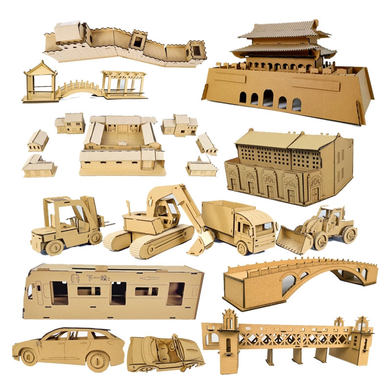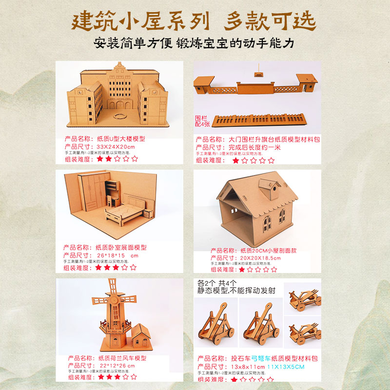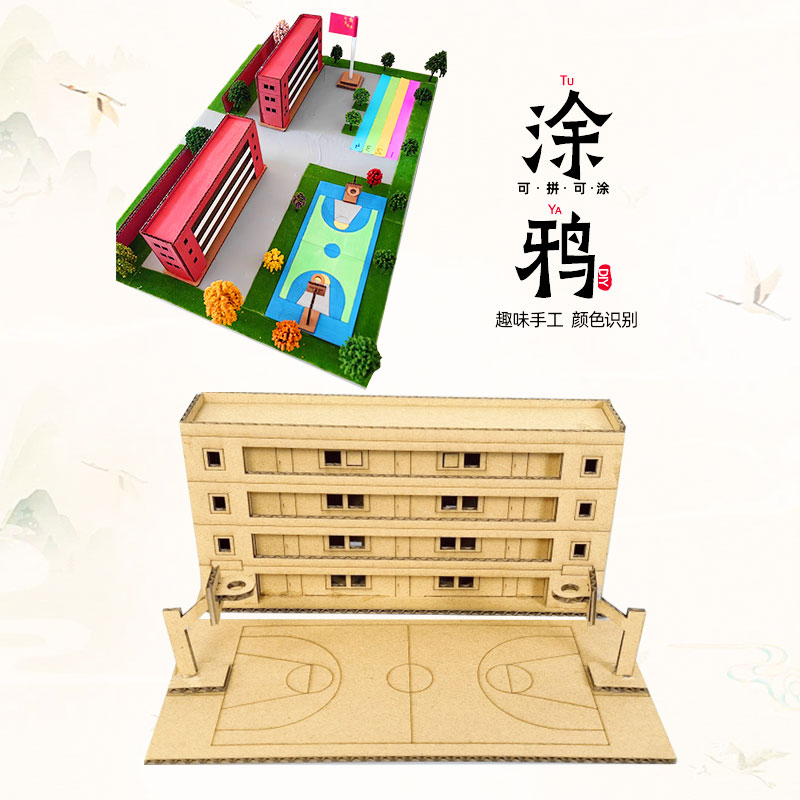 纸质模型手工作业文创家具校园区小屋教学楼大桥古建筑diy材料包
