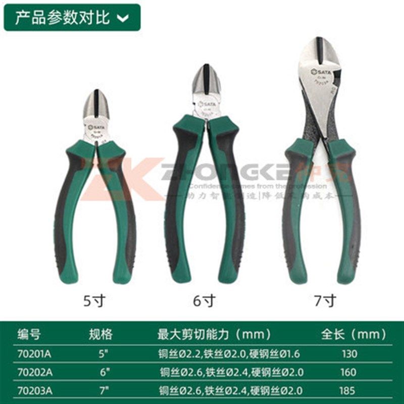 世达斜口钳子5寸斜嘴钳偏口钳6寸7寸线钳70201A/72020A/70203A