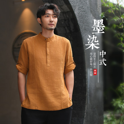 楠七分袖国风男性透气t恤棉麻