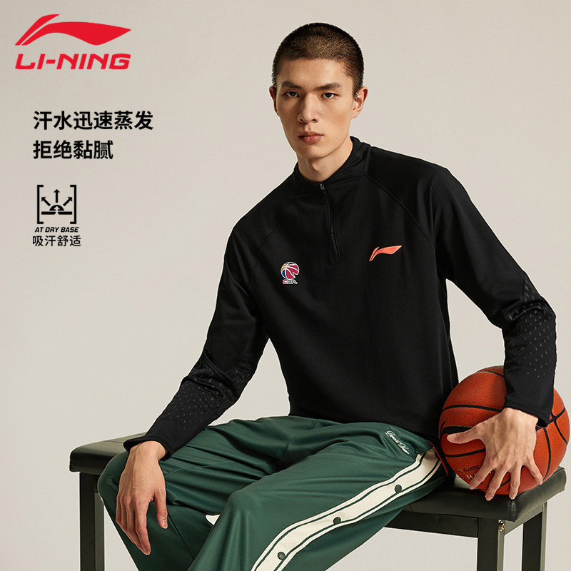 李宁男子长袖运动T恤篮球系列网孔贴身舒适透气训练上衣ATLU217
