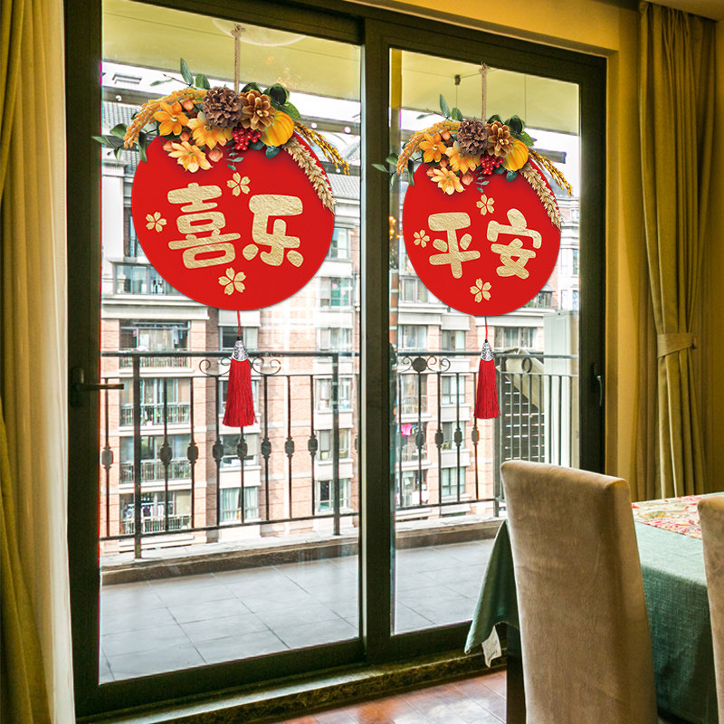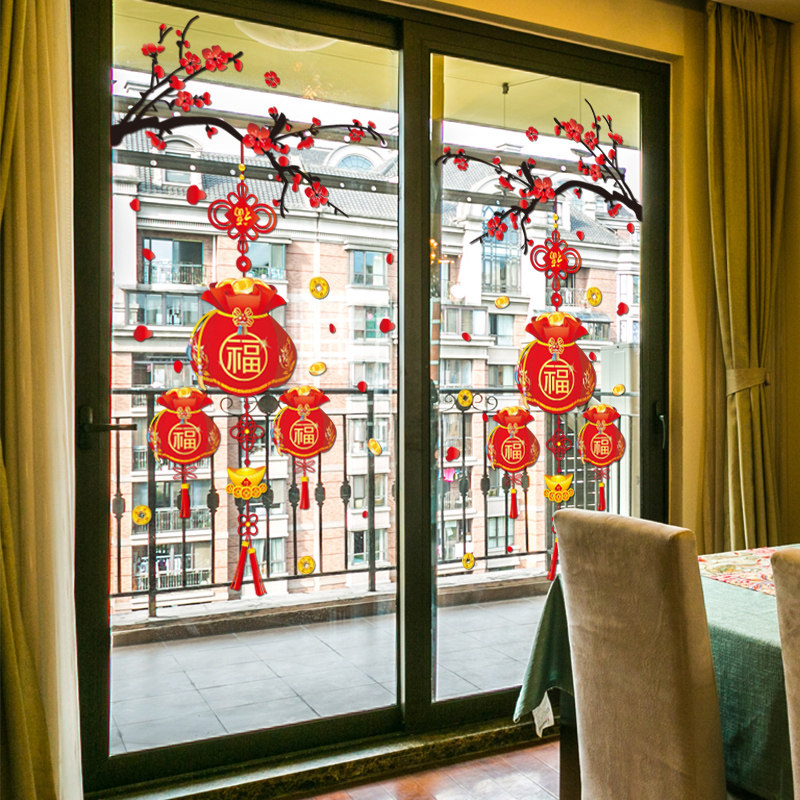 客厅阳台过年装饰静电玻璃门贴纸