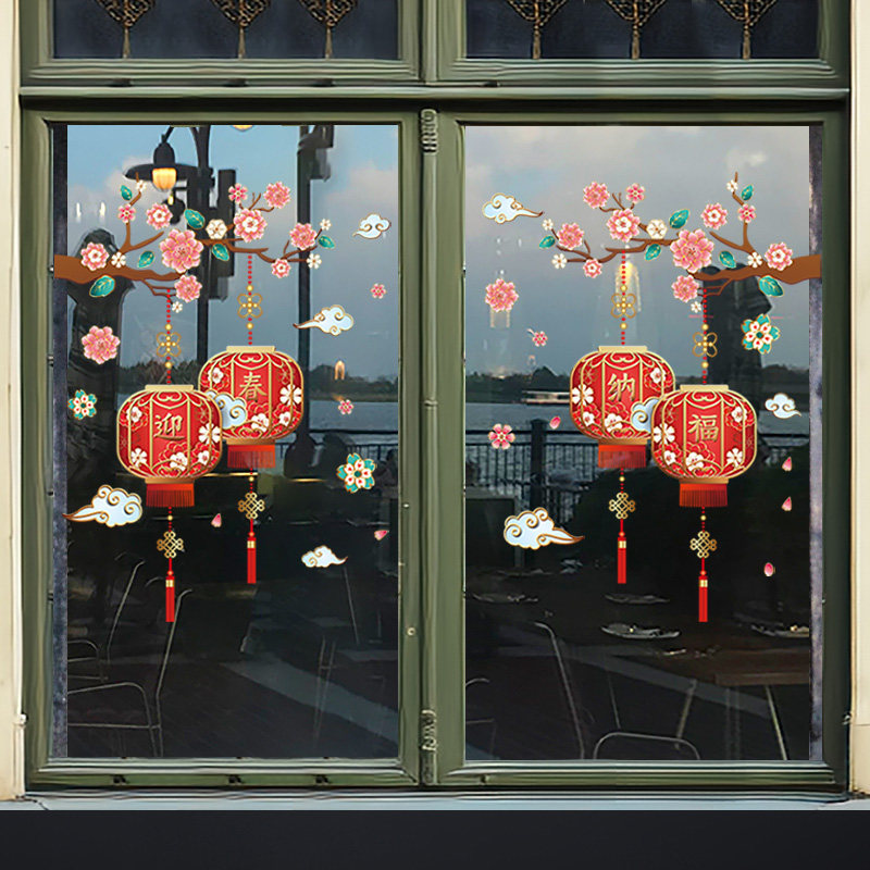客厅阳台推拉门新年装饰静电玻璃贴纸过年布置窗花春节元宵门贴画