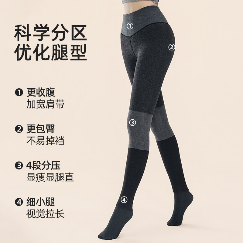 猫人高个子打底裤女加绒外穿保暖加厚款棉裤灰色压力显瘦腿连裤袜
