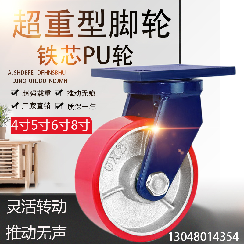 超重型万向轮4寸5寸6寸8寸10寸12寸铁芯聚氨酯脚轮载重1-5吨轮子