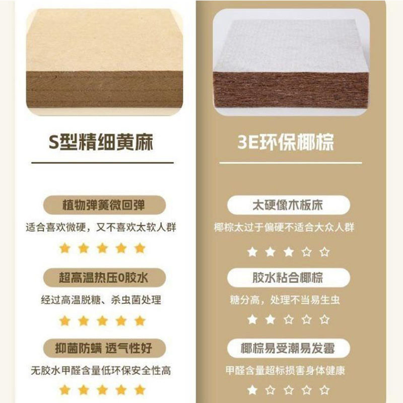 纯天然黄麻床垫家用卧室硬薄s型精细儿童护脊椰棕乳胶m榻榻米定制