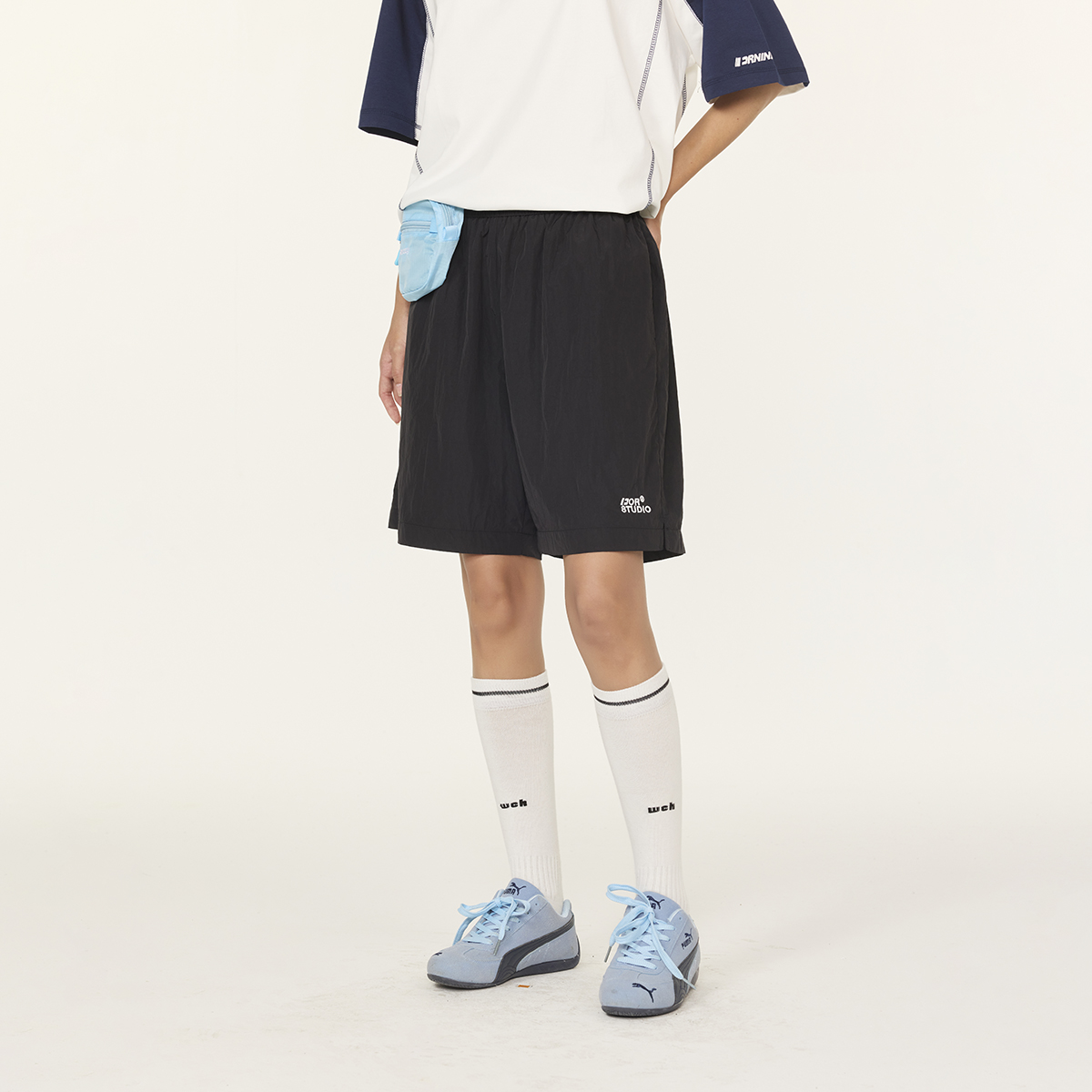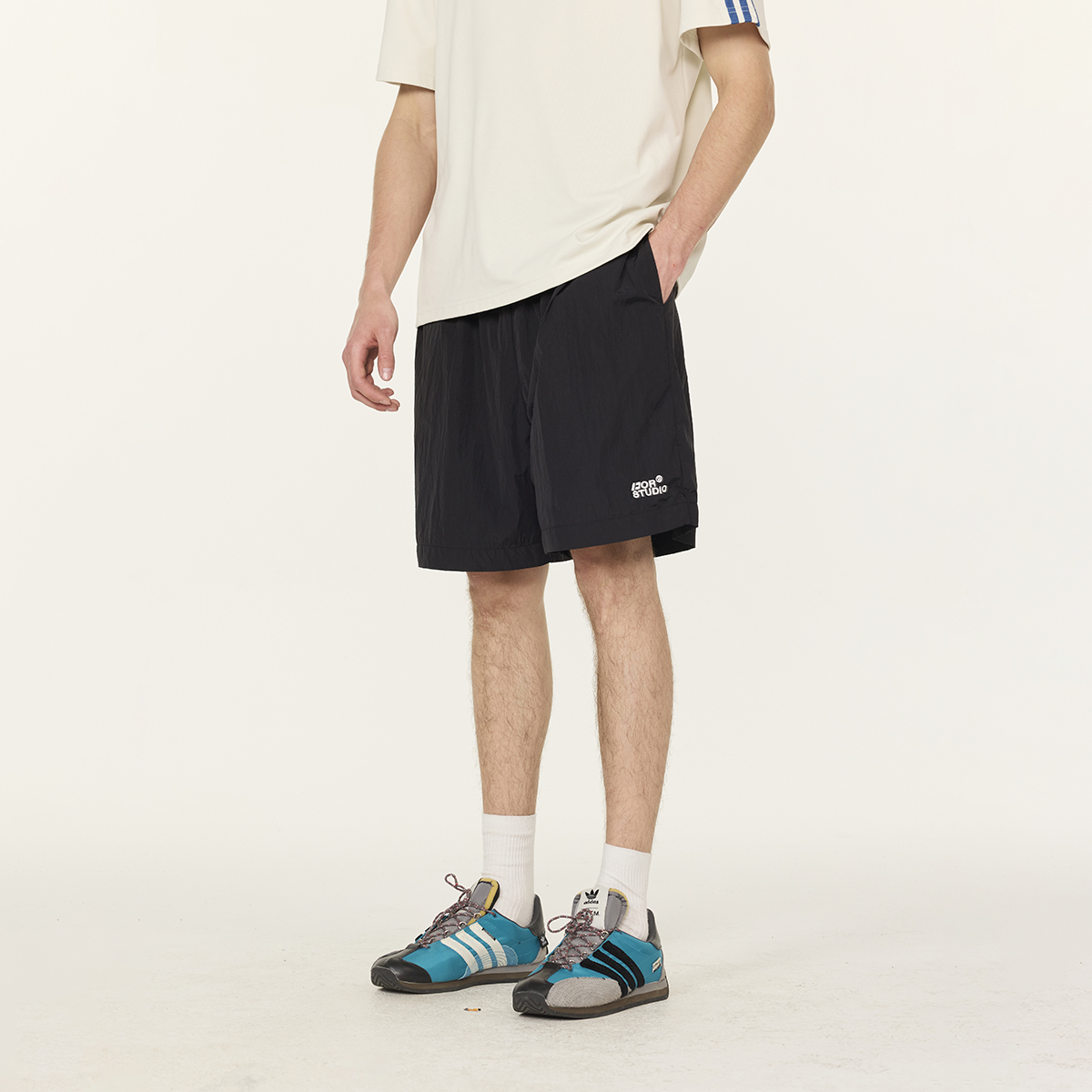 FORNINES刺绣薄款速干运动短裤男生夏季宽松直筒沙滩休闲五分裤子