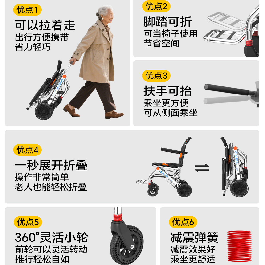 恒倍舒便携式轮椅代步车折叠轻便超轻小型简易旅行老年专用手推车