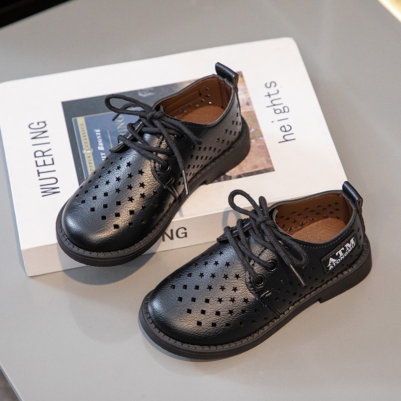 男童皮鞋2025新款夏季镂空透气黑色英伦风春秋款软底儿童演出鞋子