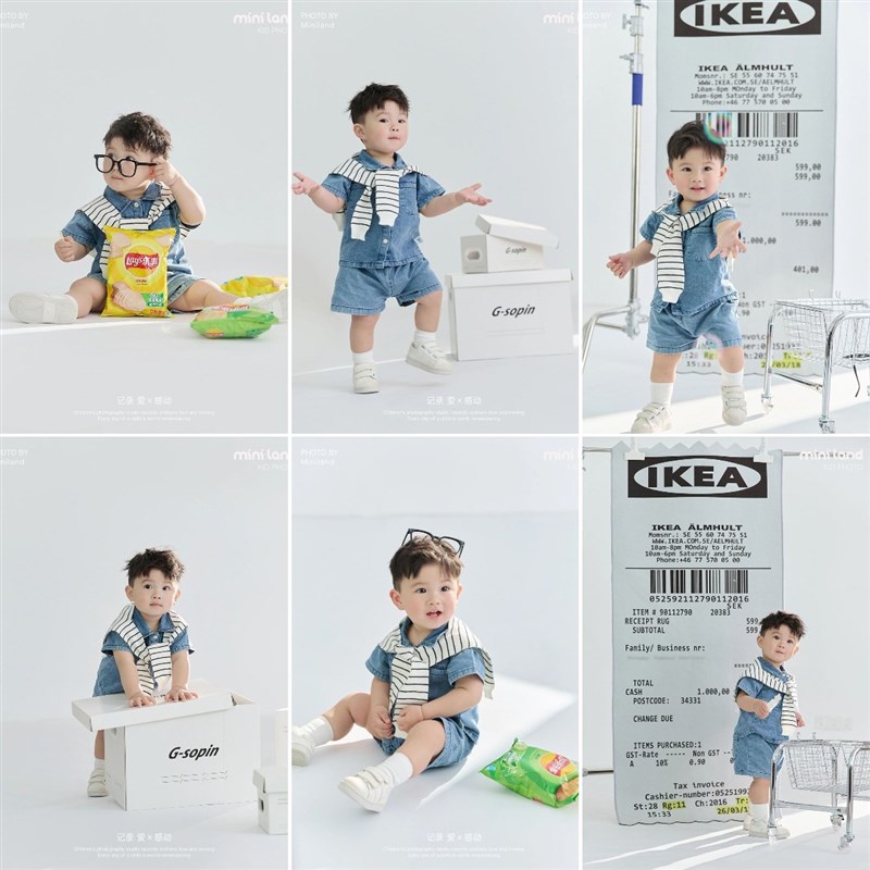 春日牛仔儿童摄影主题服装宝宝百天照周岁照拍照服装道具影楼