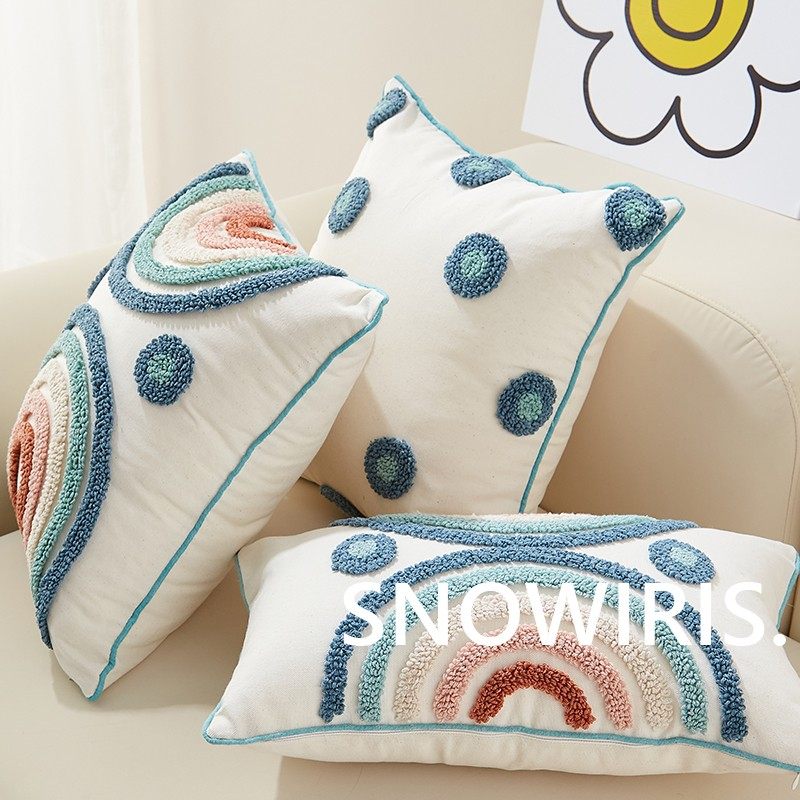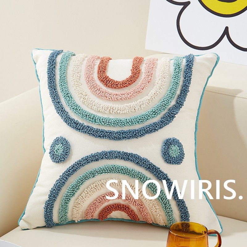 抱枕可爱女生彩虹枕套客厅靠枕小清新簇绒沙发靠垫可拆洗腰枕靠枕