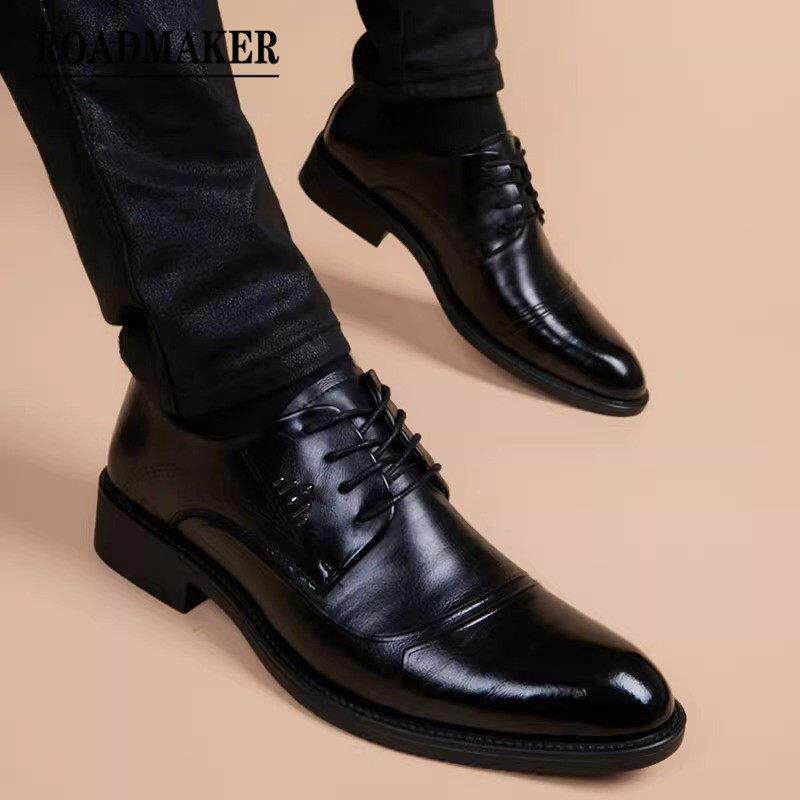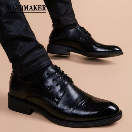 罗德梅科正装皮鞋男英伦真皮透气商务休闲德比鞋内增高新郎结婚鞋