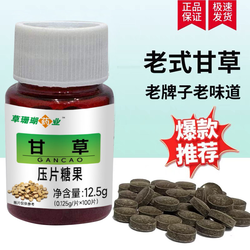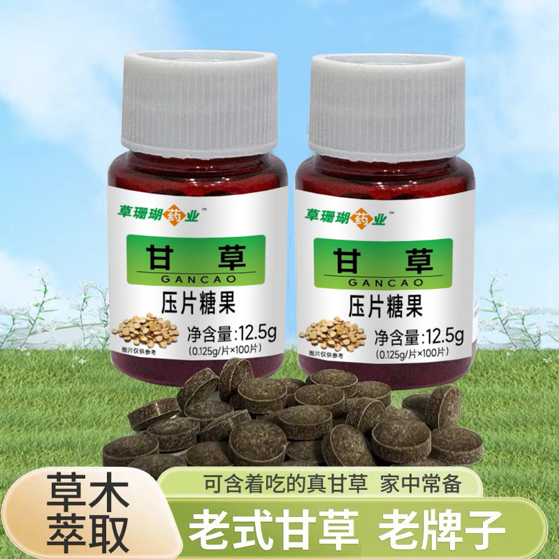 2送1甘草100片瓶装老牌草本含化甘草粉压片糖含片正品包邮