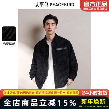 太平鸟男装小香风休闲衬衫2025春新款时尚衬衫男士衬衣&BACHF1178