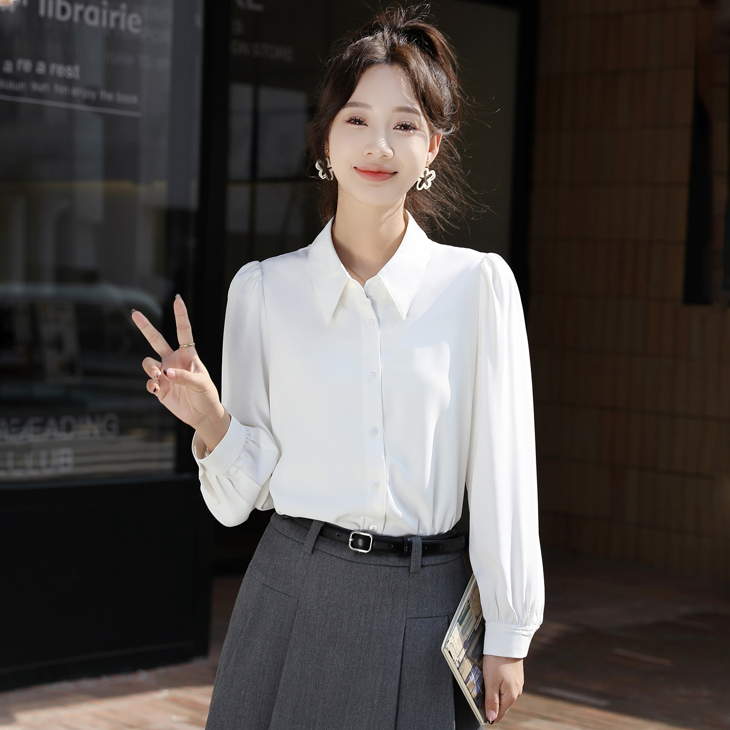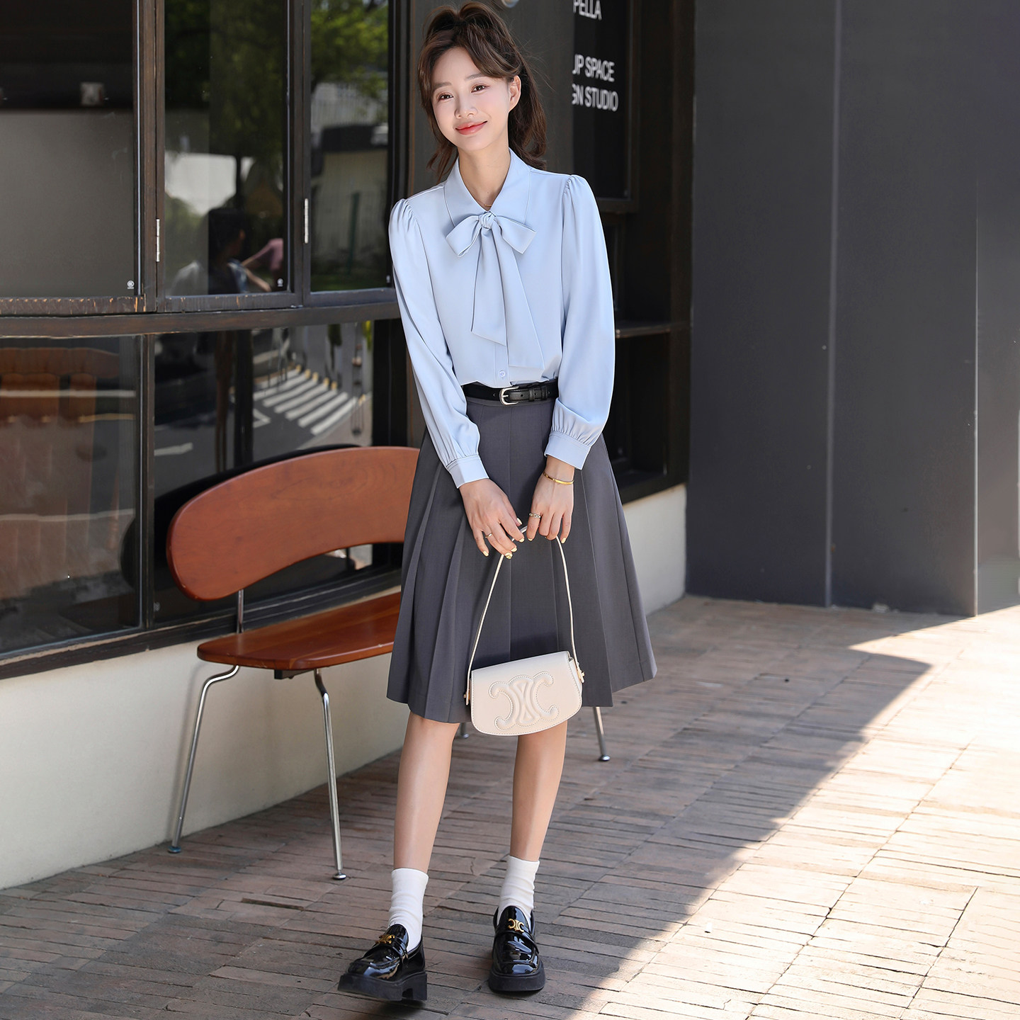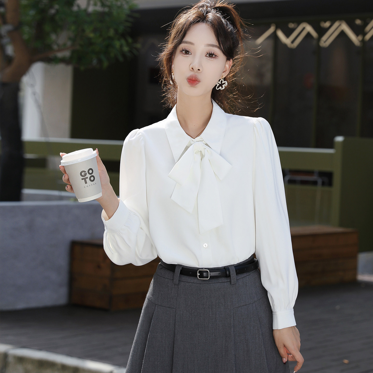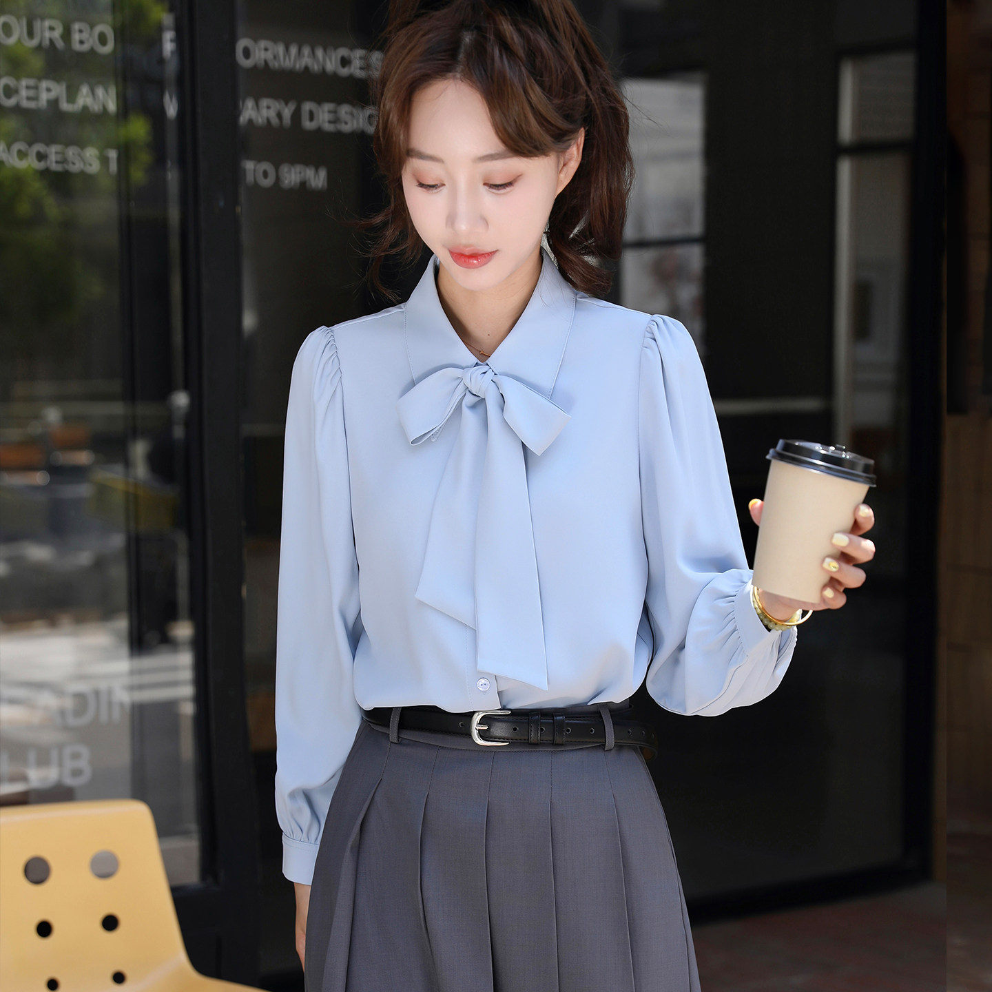 教资考公面试正式场合宽松垂感蝴蝶结系带飘带正装雪纺衬衫女长袖