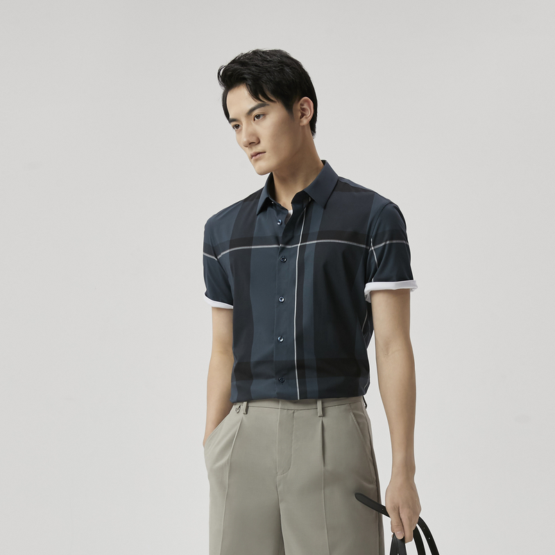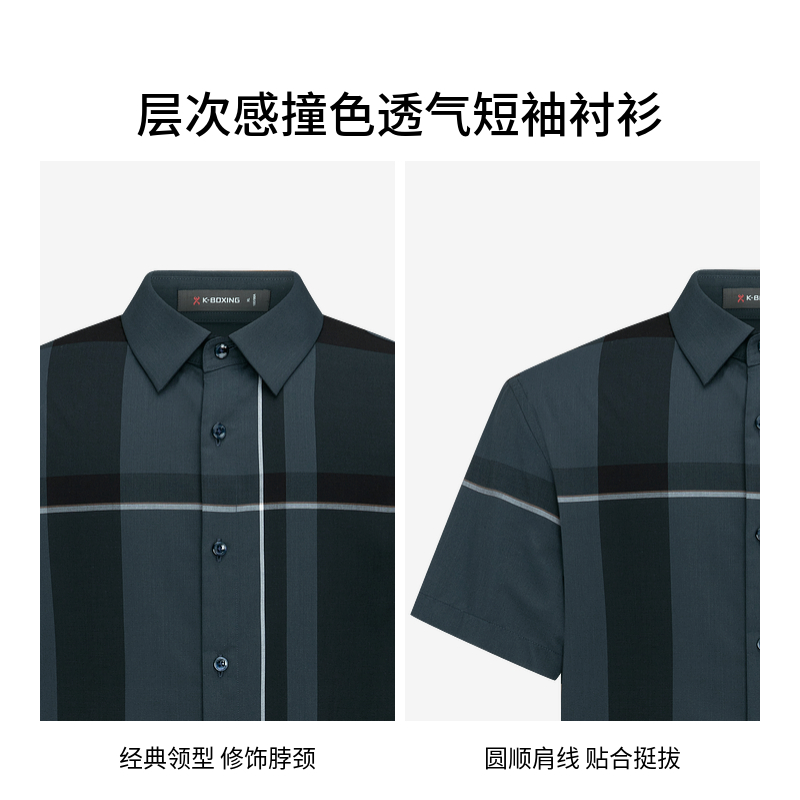 劲霸男装春夏高级感上衣商务休闲层次感撞色透气短袖衬衫男