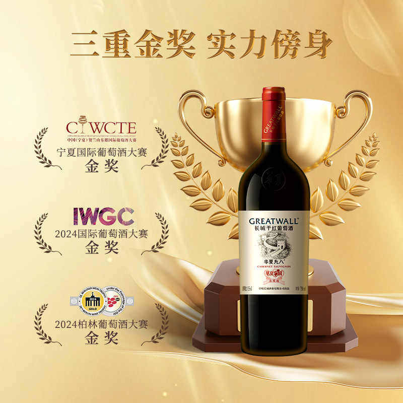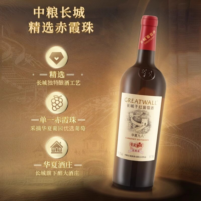 长城华夏葡园九八赤霞珠干红葡萄酒中粮经典款国产红酒750ml*6瓶