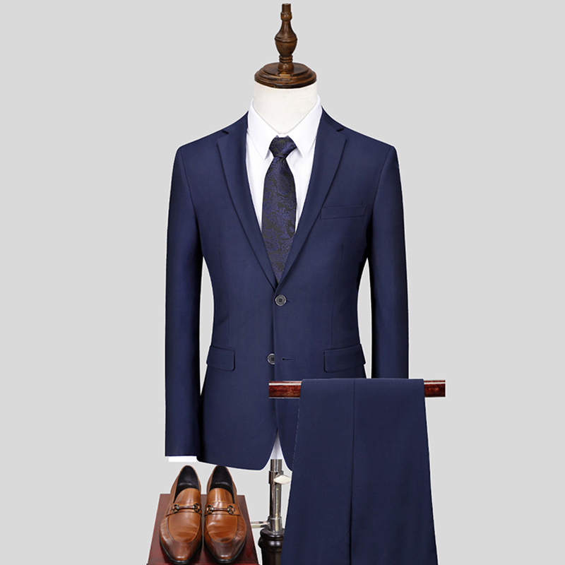 罗蒙男士休闲西服两件套装男商务职业正装修身小西装新郎结婚礼服