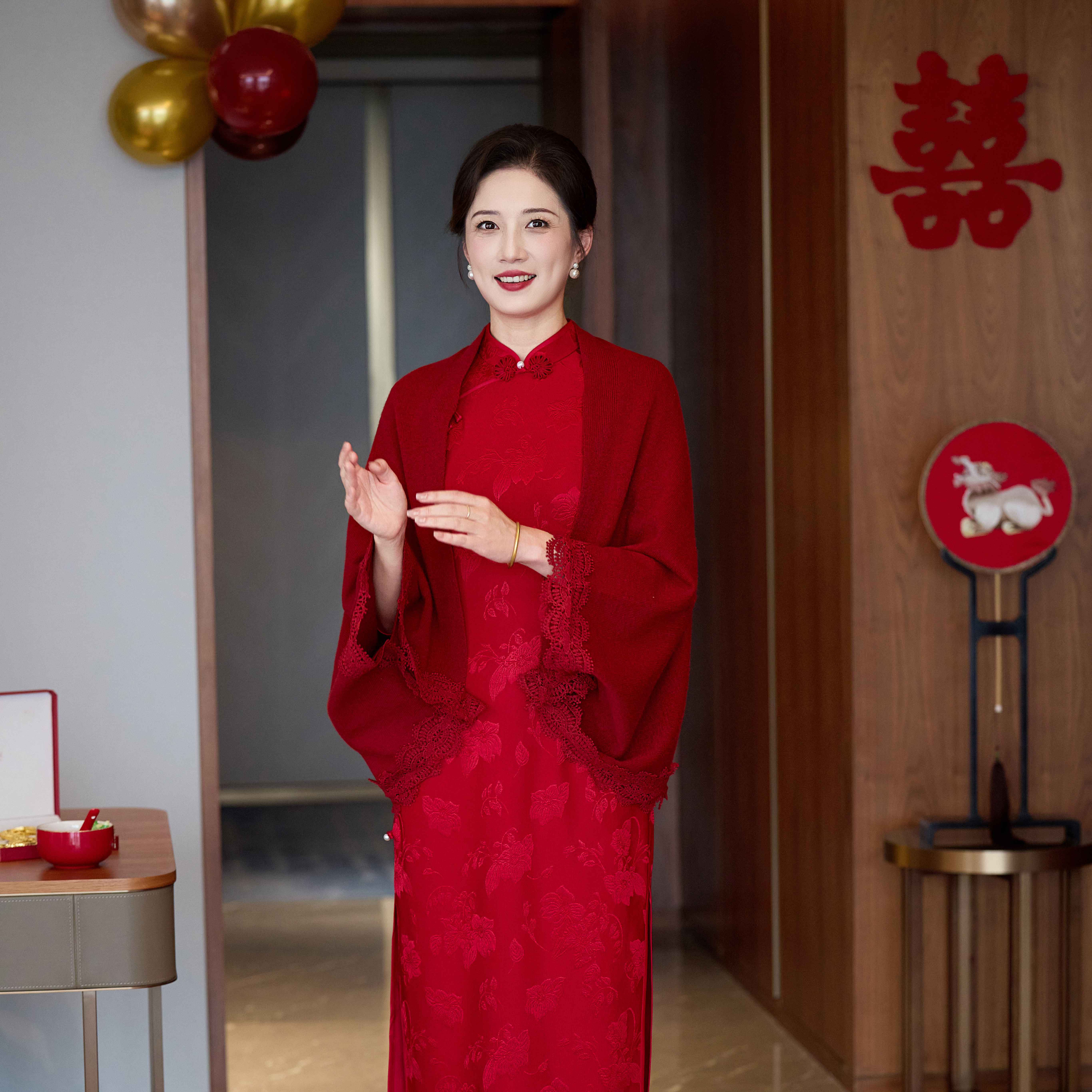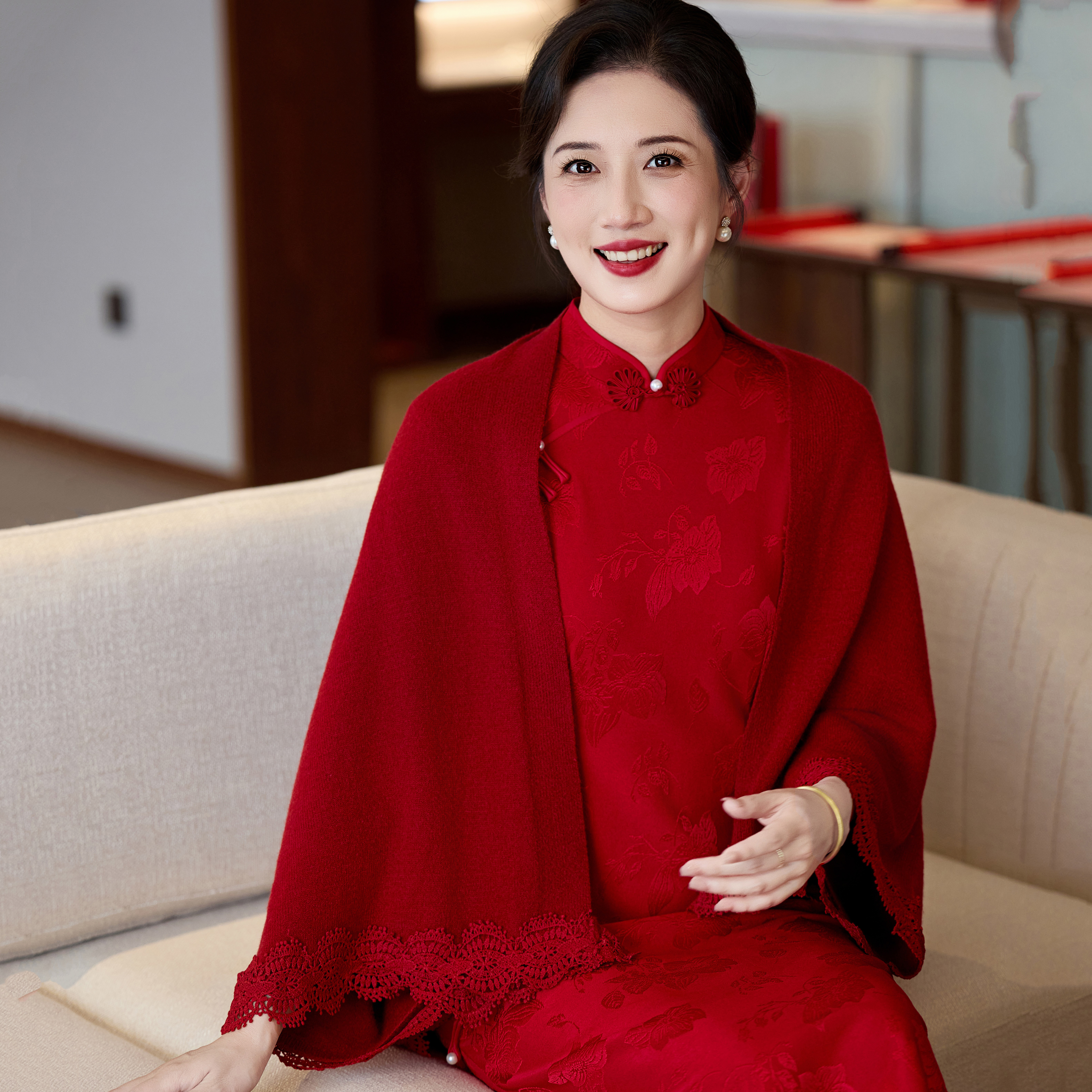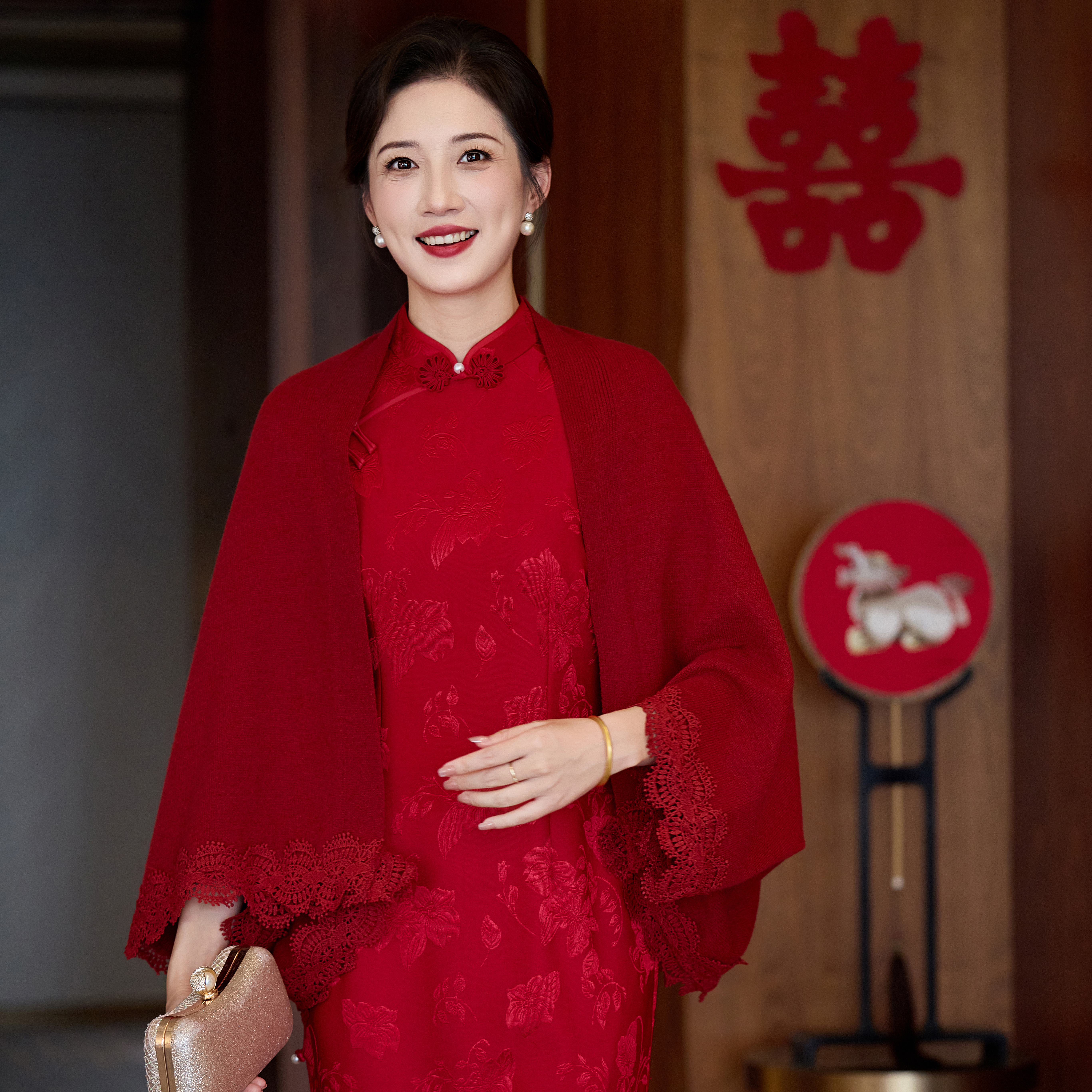 秋冬新款短款婚庆喜婆婆配旗袍小披肩外搭高级感针织衫女复古外套