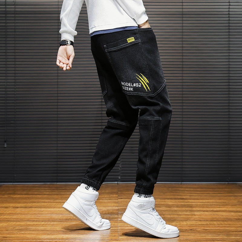 牛仔裤男士2025春夏季宽松束脚哈伦工装裤潮流百搭休闲裤九分裤子