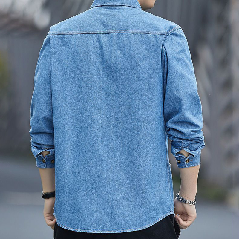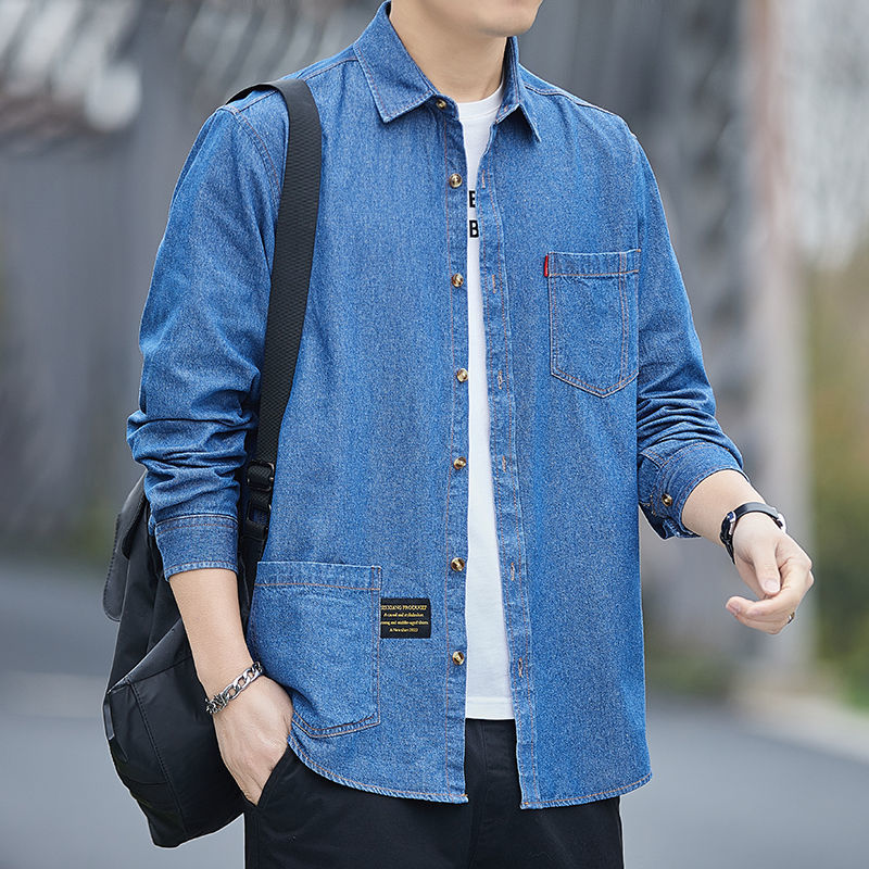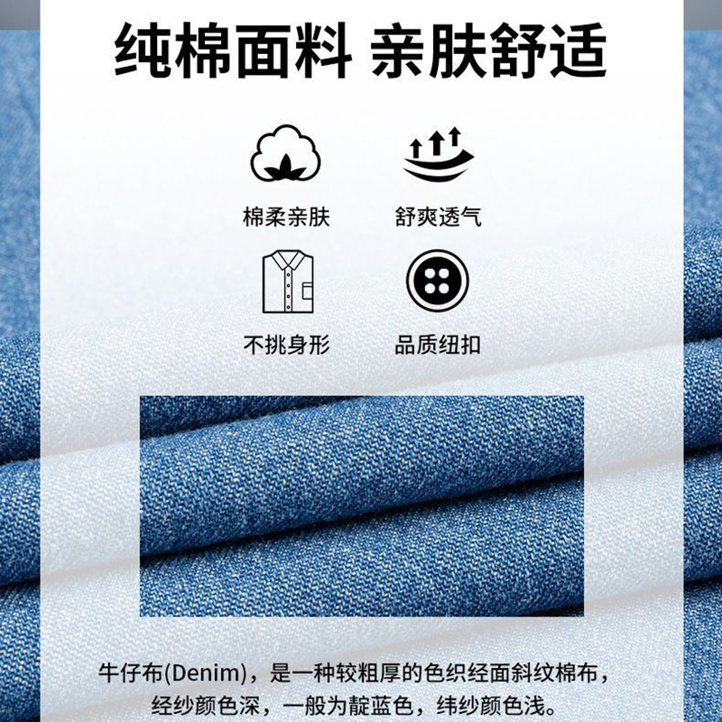 春秋新款牛仔衬衫男士长袖全棉衬衫潮流休闲外套宽松免熨烫上衣