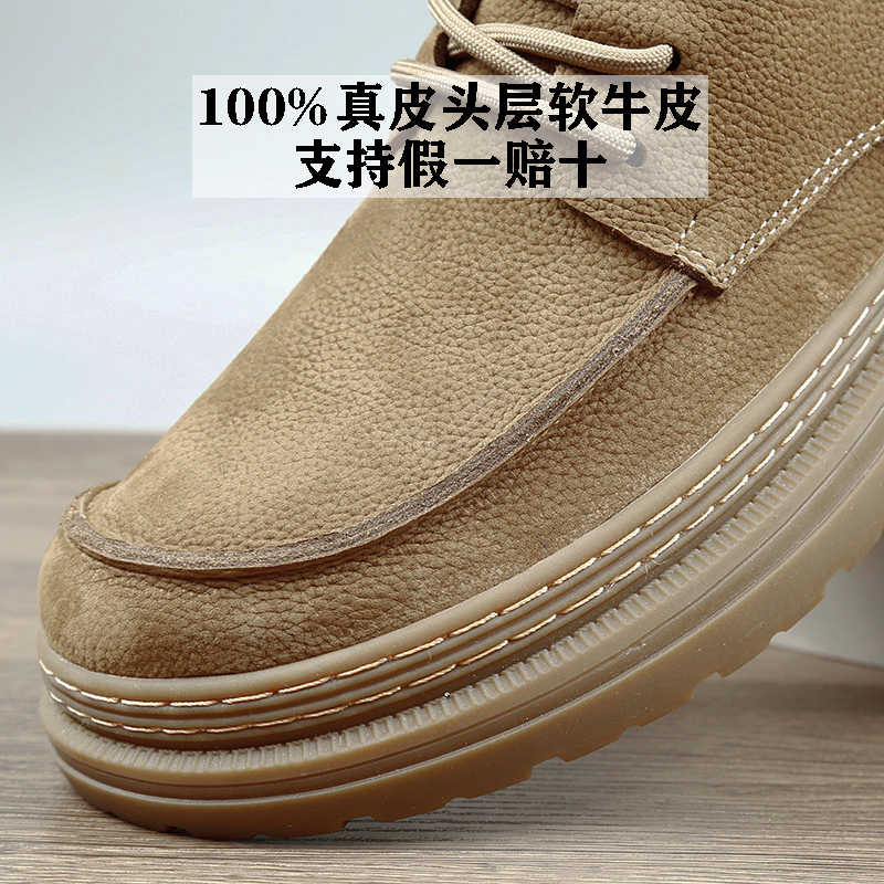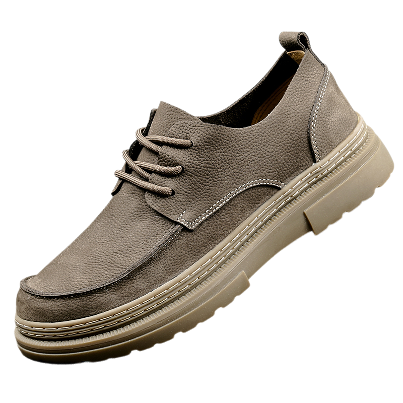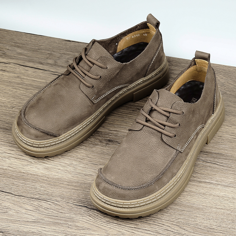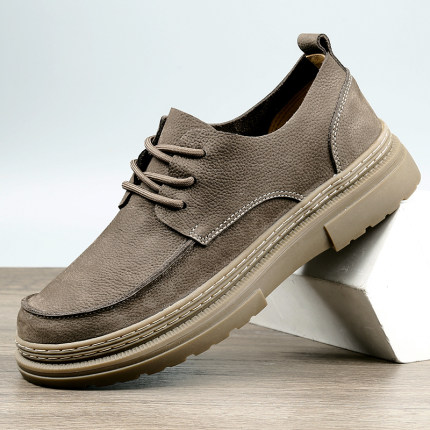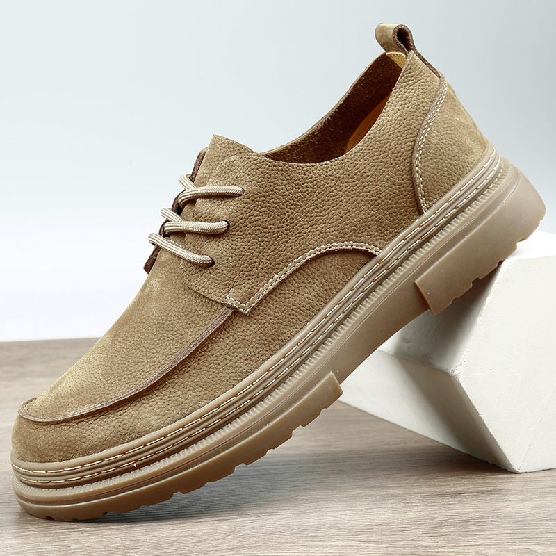 新款休闲皮鞋男真皮宽脚大头皮鞋软皮厚底透气磨砂皮复古百搭男鞋