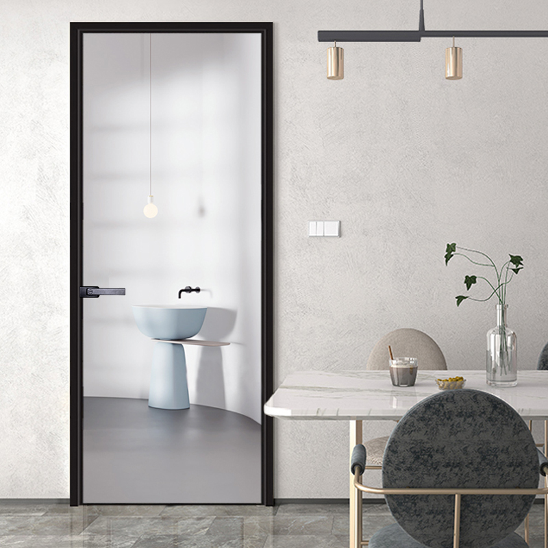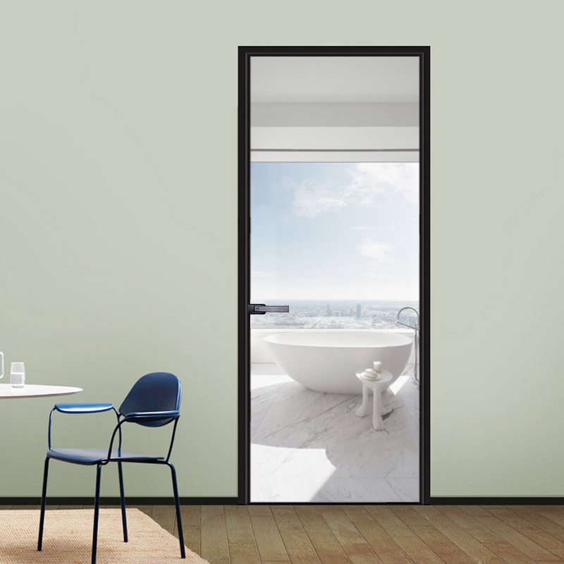 网红新款极窄卫生间门厕所门铝合金平开门钛镁合金超白长虹玻璃门