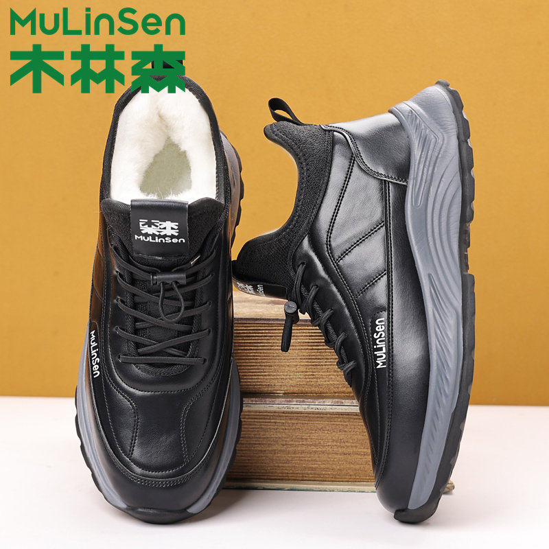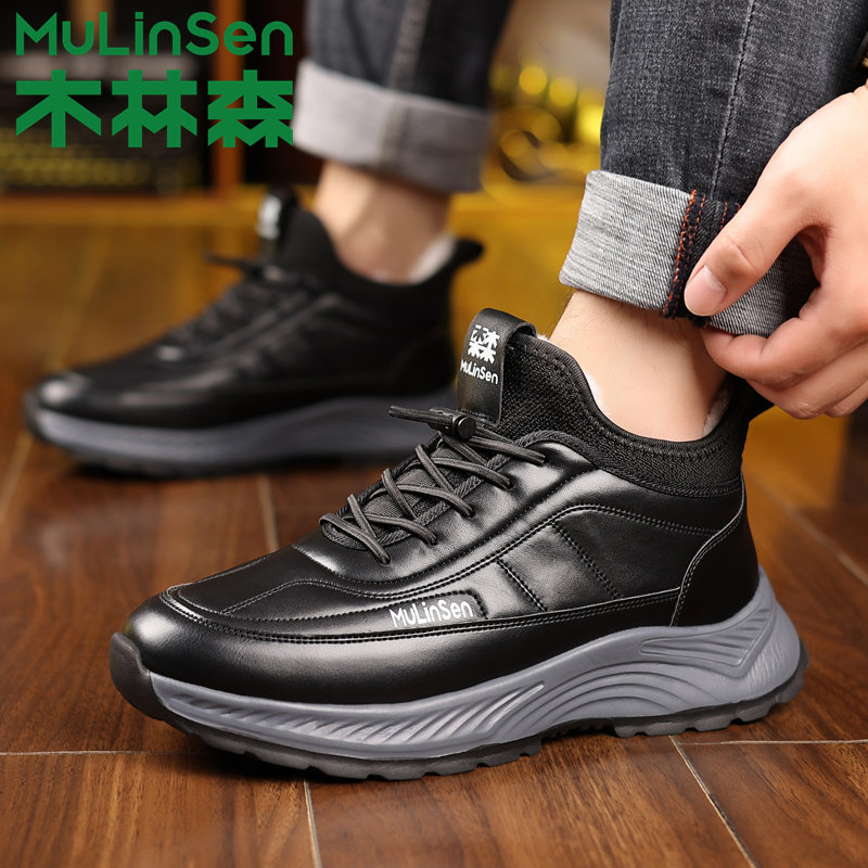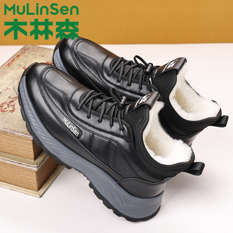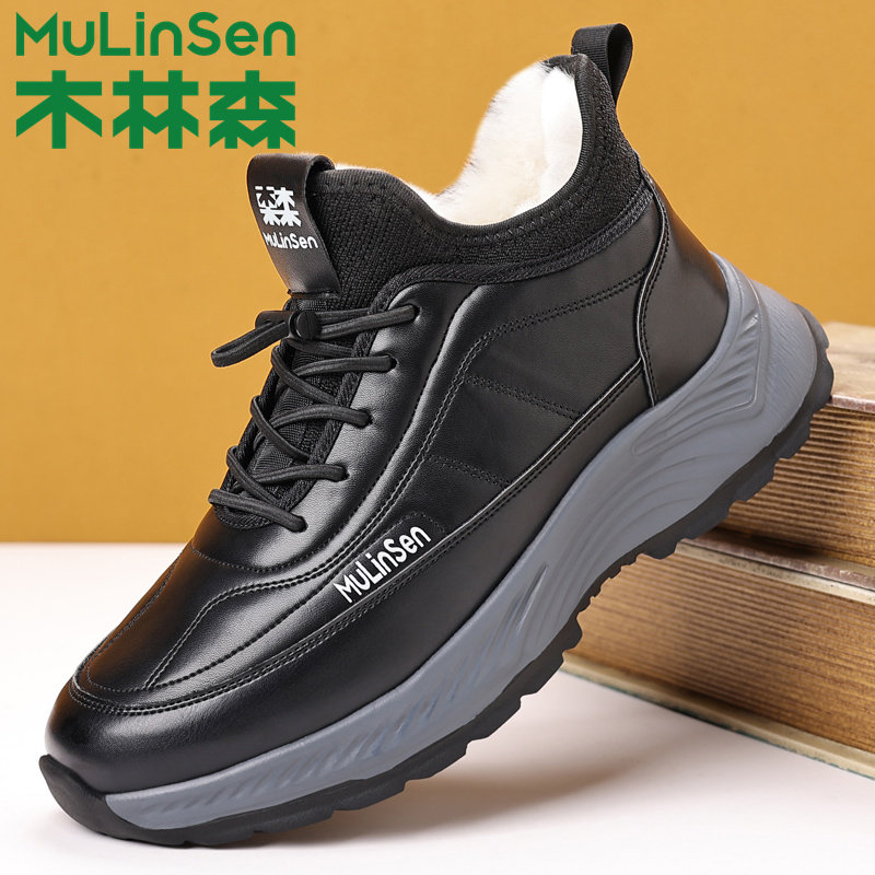 木林森男士棉鞋冬季加绒保暖加厚大码休闲鞋羊毛皮毛一体雪地靴子