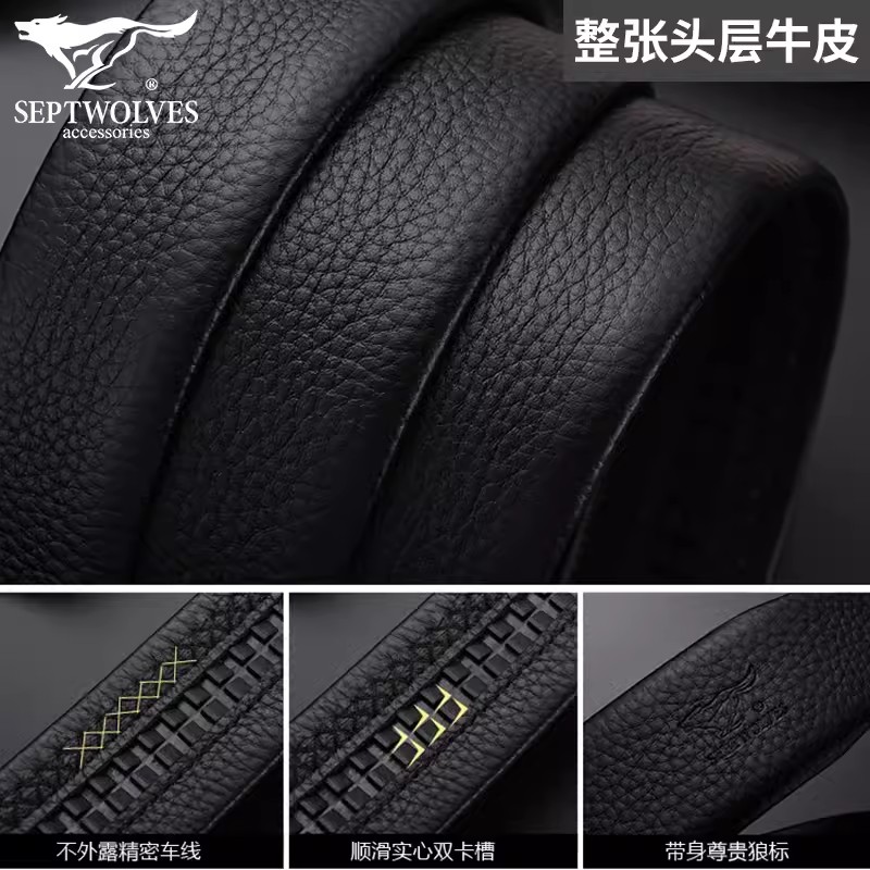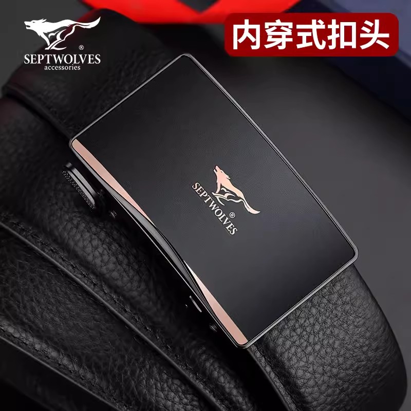 七匹狼皮带男真皮内穿式休闲内扣腰带自动扣头层牛皮商务裤带正品