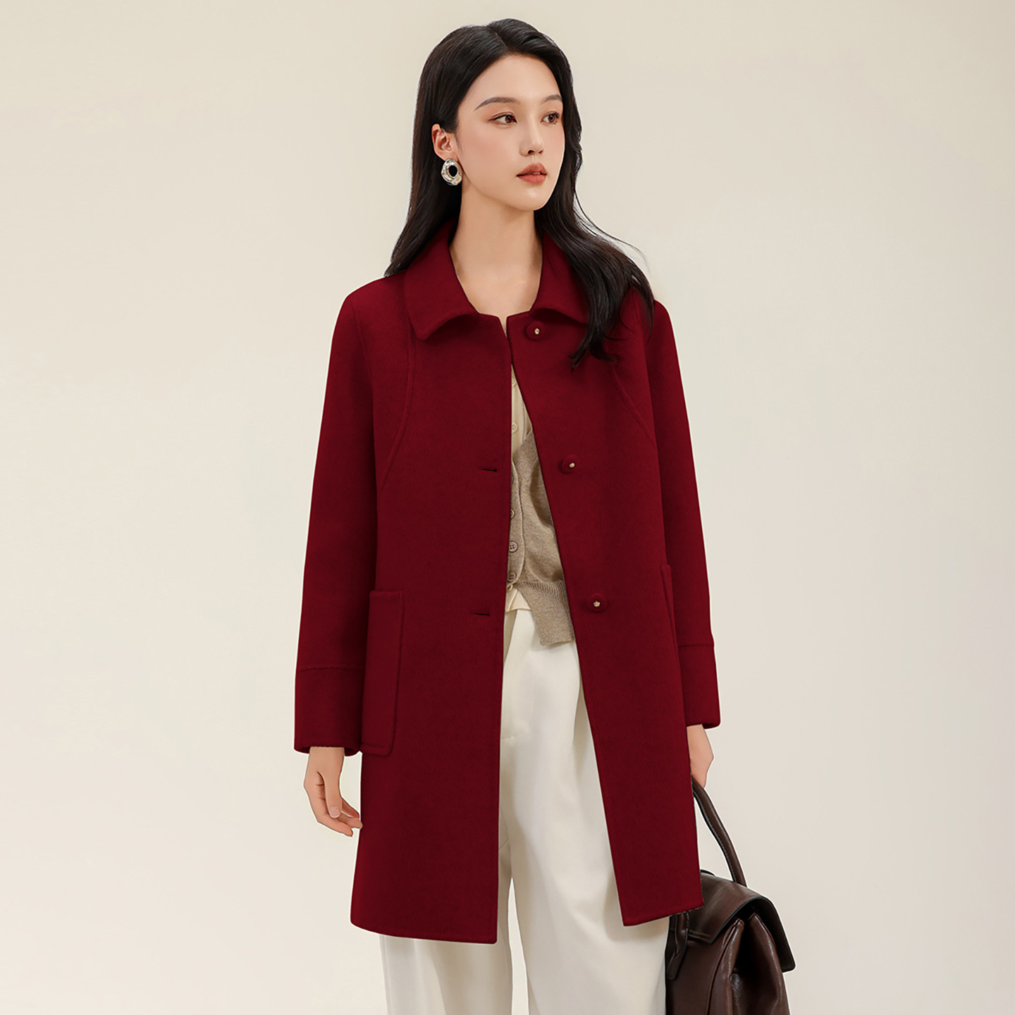 新款双面呢子羊绒大衣女翻领秋冬修身中长款赫本风羊毛呢外套气质