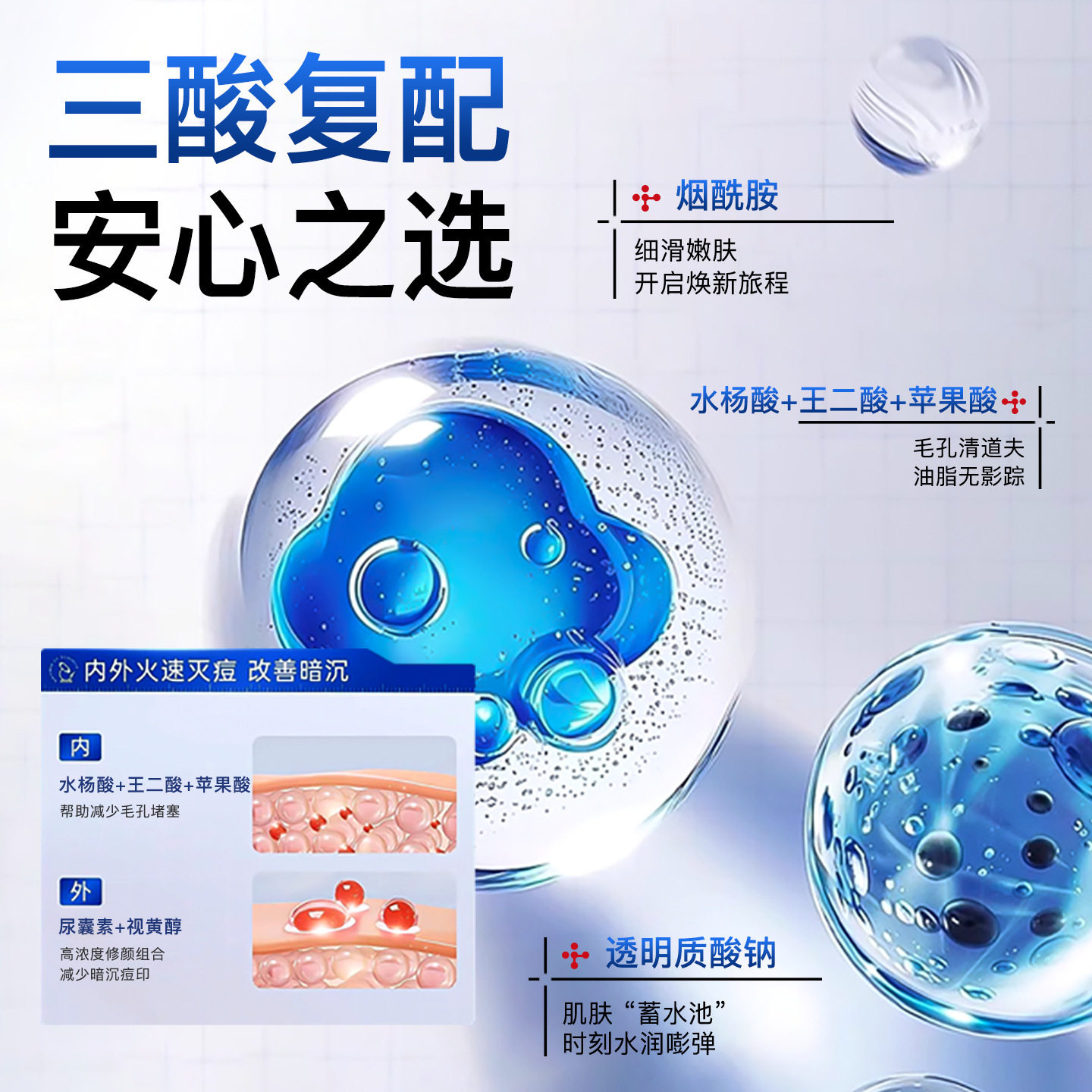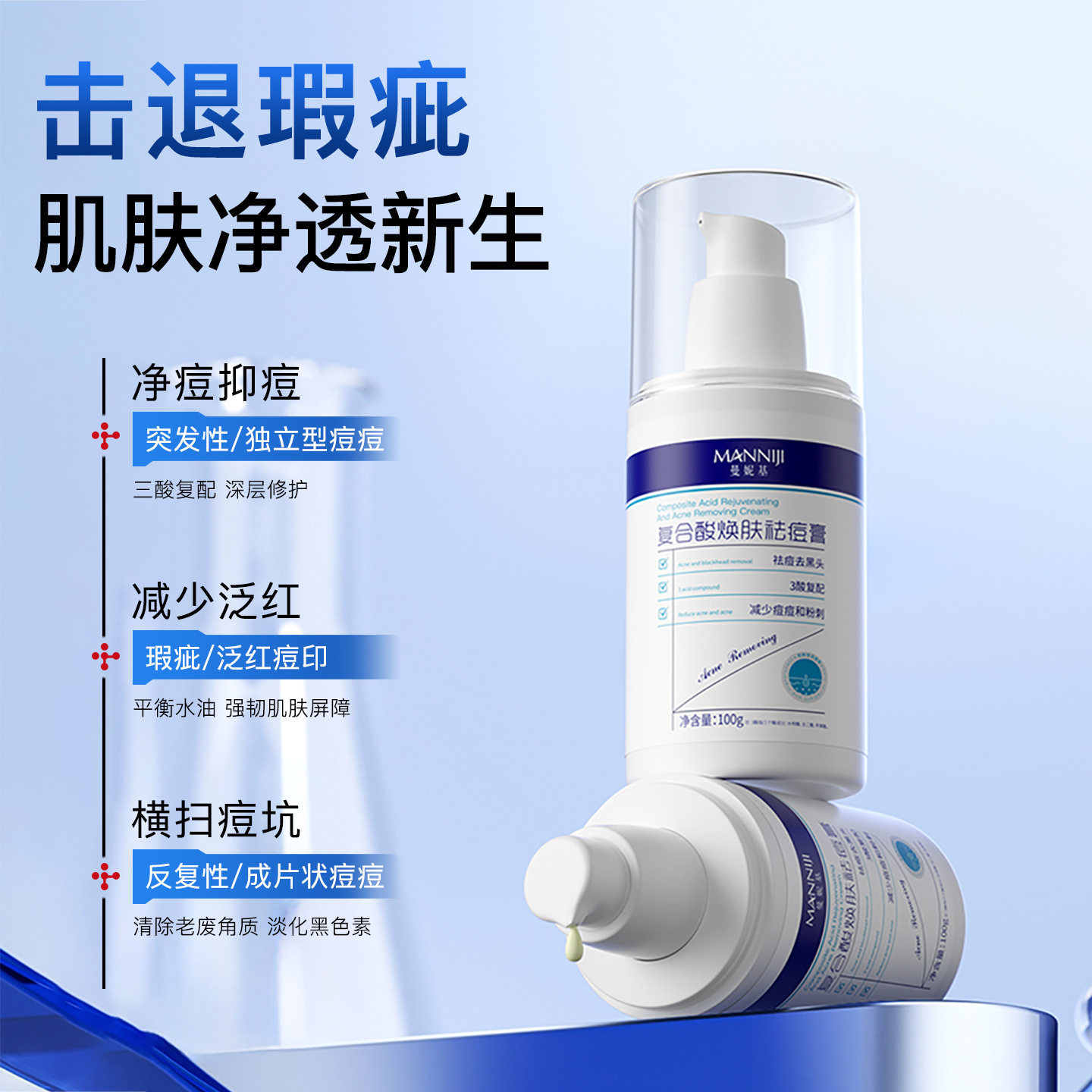复合酸焕颜祛痘膏保湿去粉刺淡化痘印细致毛孔清爽净油面霜优选