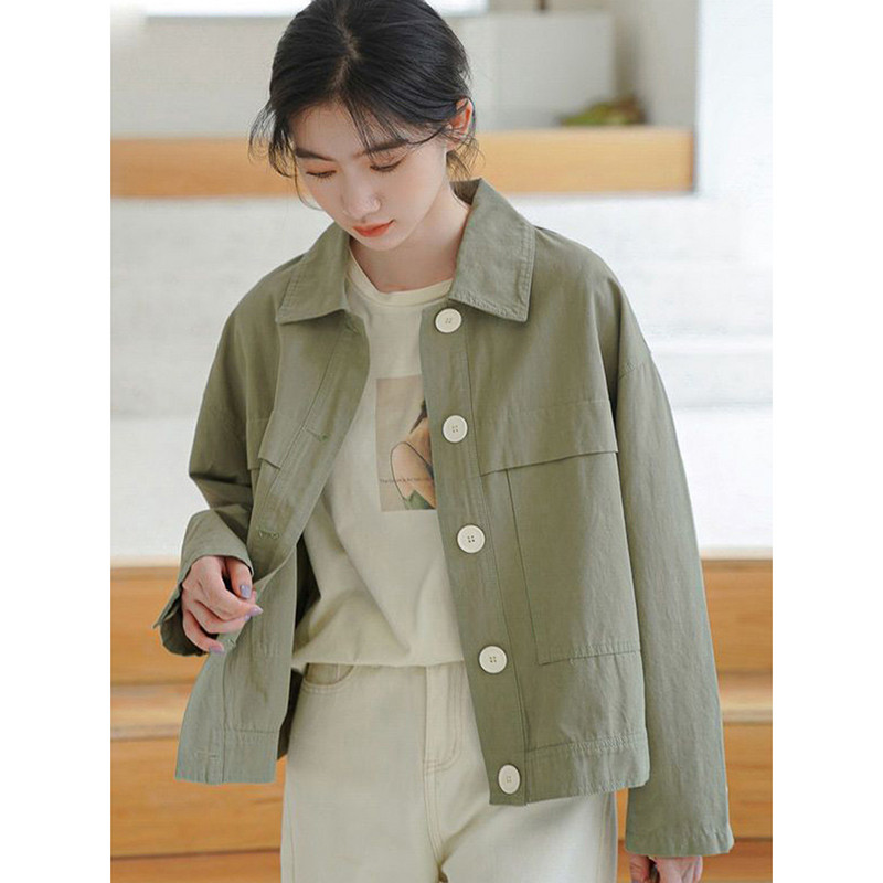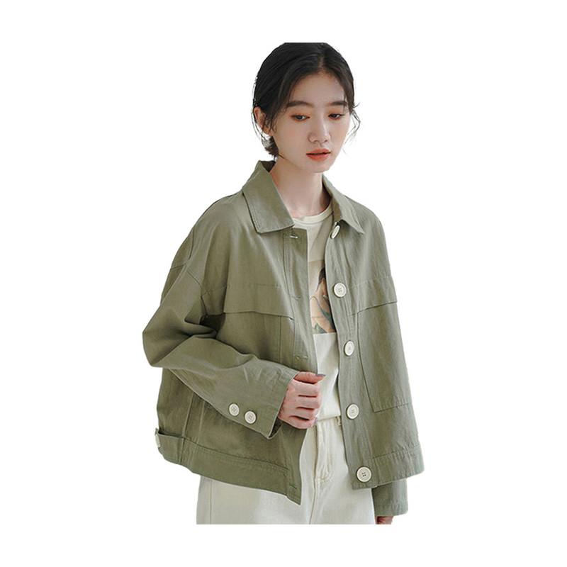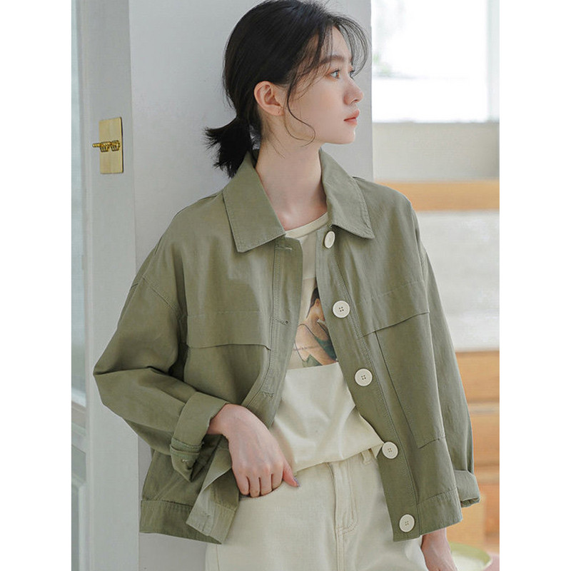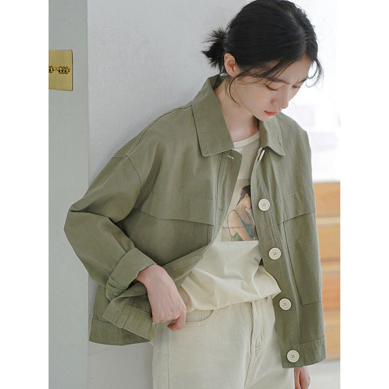 LE真维斯女装2025春季新款 韩版文艺风翻领女长袖宽松休闲外套