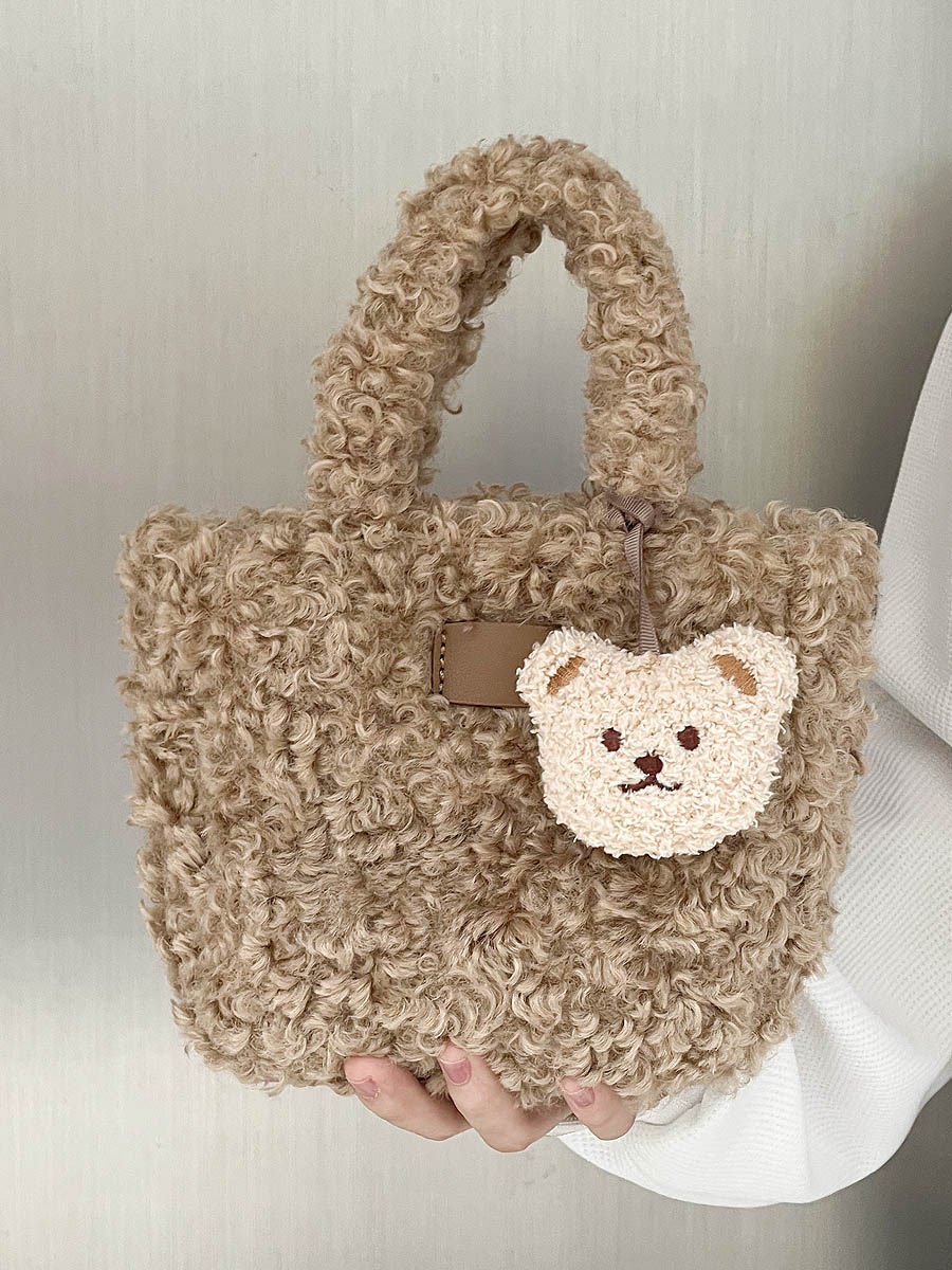 2024新款少女包包羊羔绒毛手提包mini休闲单肩斜挎磁扣毛毛小包