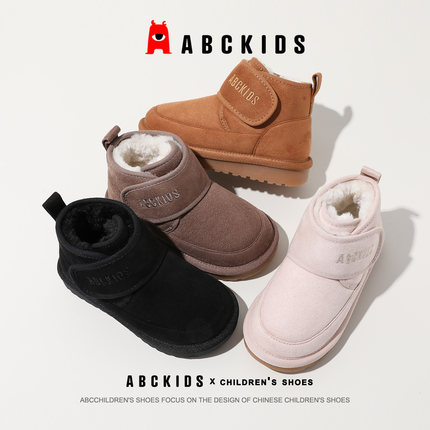 abckids儿童雪地靴2025冬季新款加绒加厚男童大棉鞋子女童短棉靴