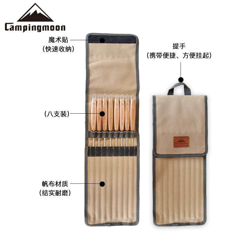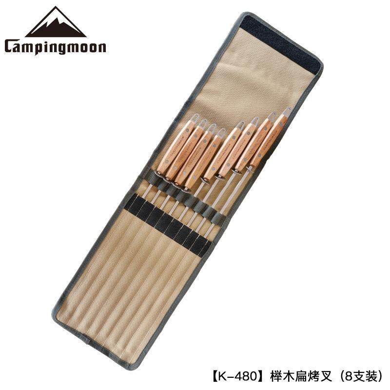 柯曼不锈钢彩木柄扁烤叉签子八只装烤针自带拔片8根一组送收纳袋