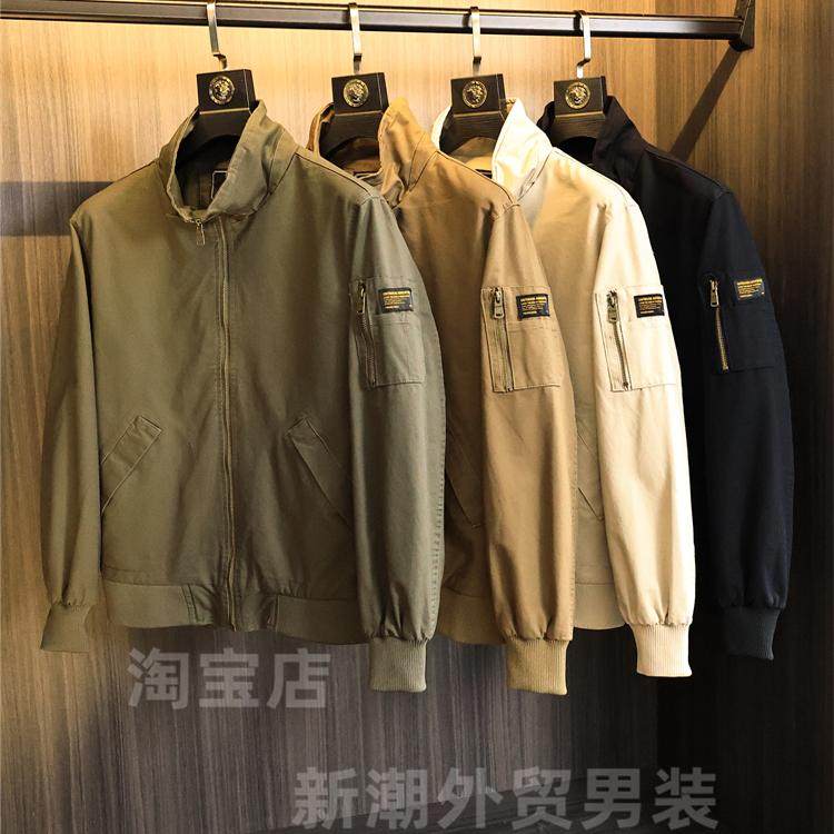 美式复古线!教官服!秋季男士纯色立领工装军旅风飞行夹克外套潮