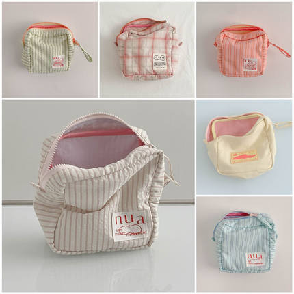 现货韩国nuaname格子柔软卫生巾收纳包口红随身化妆包小众便携ins