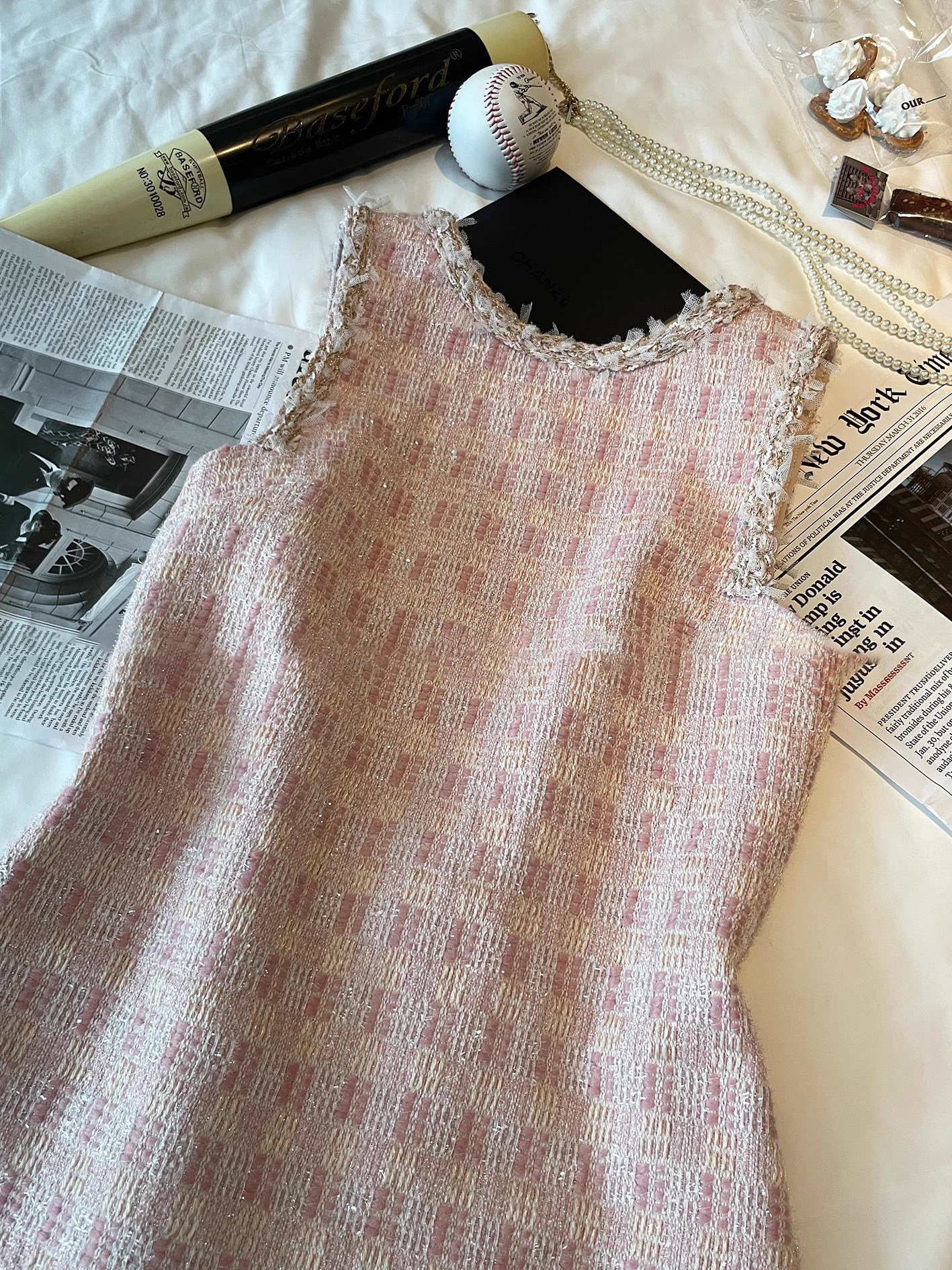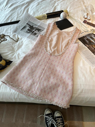 迷人法则 小香编织感露背连衣裙 时髦女夏气质无袖背心裙