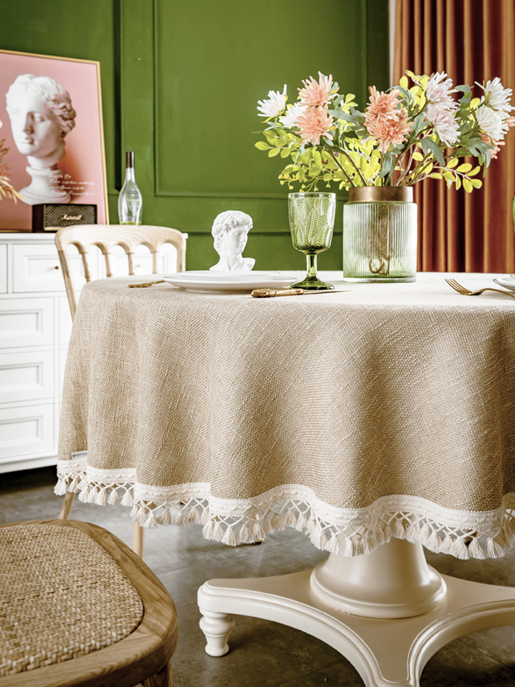加厚粗麻棉麻文艺小大圆桌流苏桌布台布餐厅客厅茶几布可定制