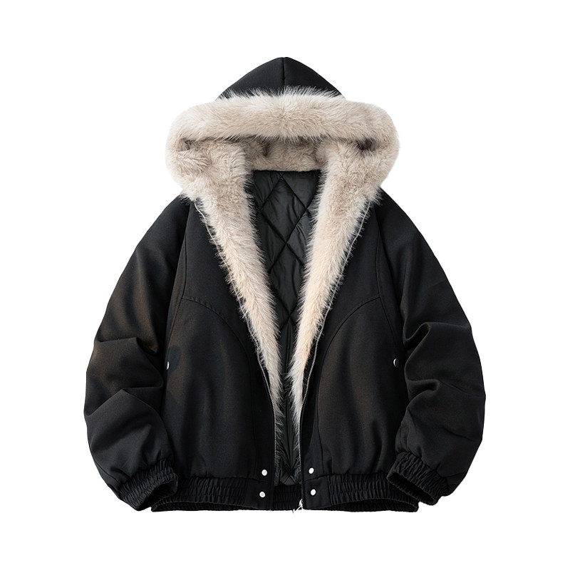 美式座山雕毛领短款棉服男款冬季保暖情侣棉衣外套男