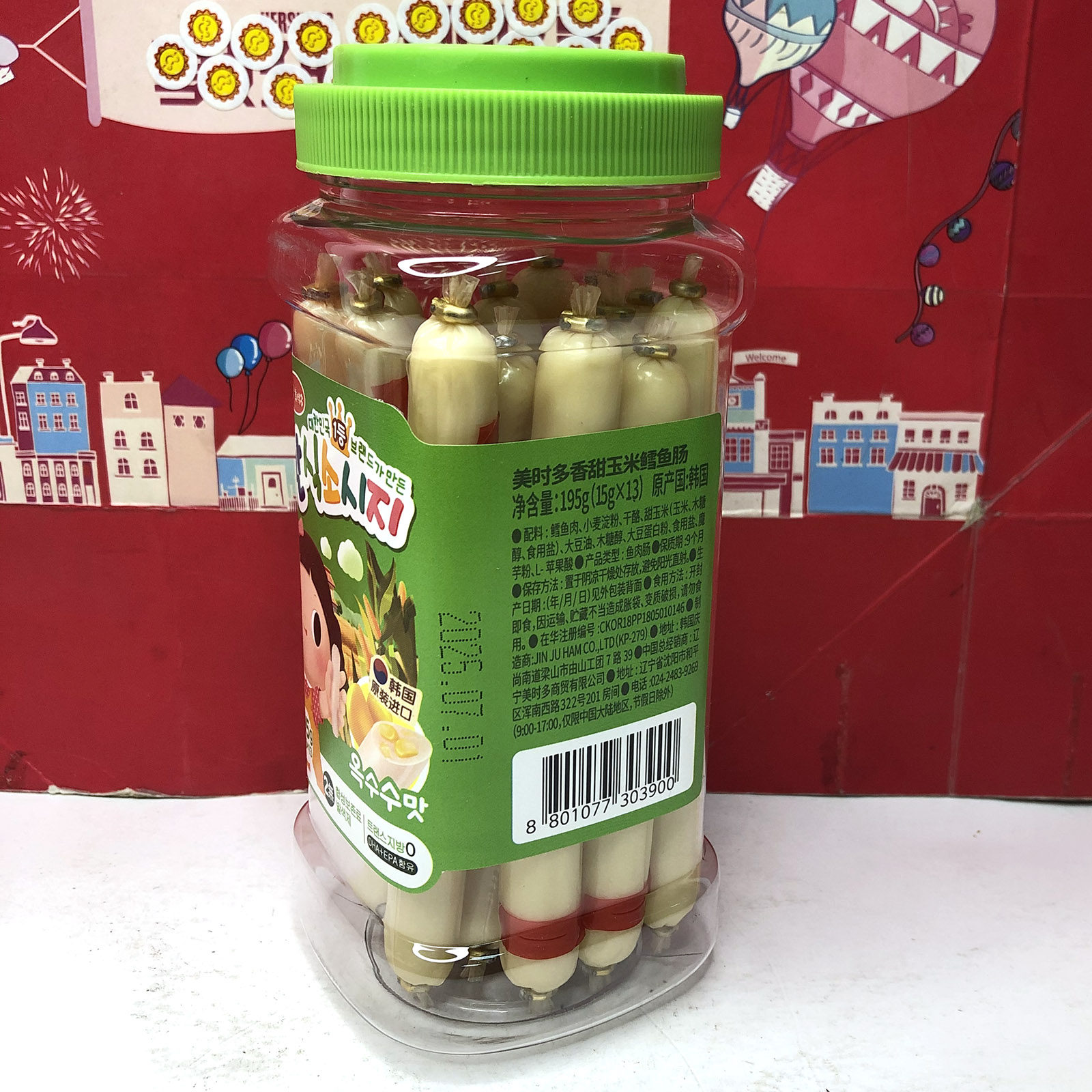 临期 韩国进口营养鲜虾/香甜玉米/原味鳕鱼肠195g(15gx13)零食