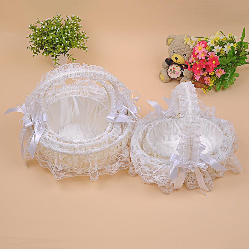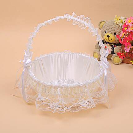 手提柳藤 竹编织婚礼花童花瓣篮子收纳水果篮蕾丝布艺定制定制